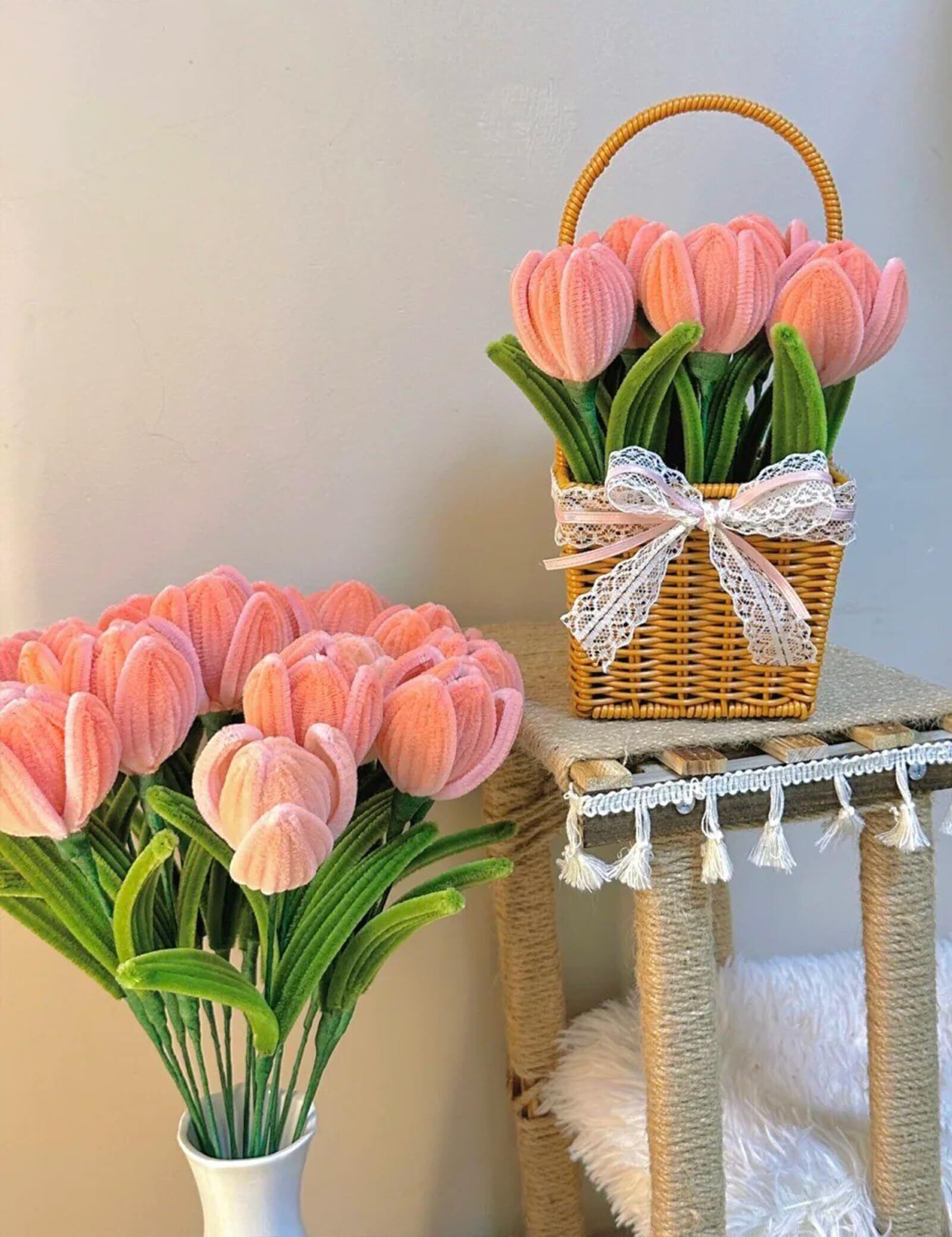 手芸モール チューリップの手芸キット ピンク+グリーン 約300本 6mm カラーモール 人工花茎20本 フラワーテープ1巻付き DIY モールフラワー インテリア飾り/手芸用 工作モール 記念日/誕生日/母の日/バレンタインデー贈り 【改良・説明書を付き】 | impsmile