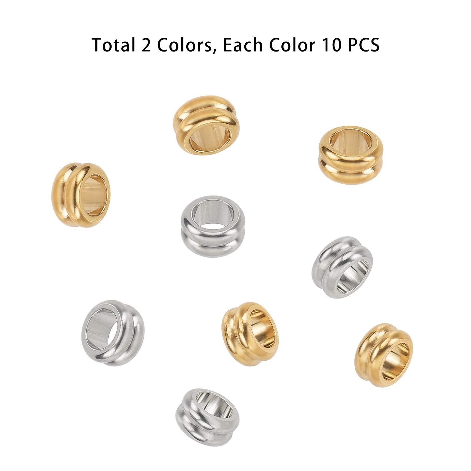 UNICRAFTALE 20個 2色 10mm コラムビーズ 304ステンレス製スペーサービーズ 円筒形 ロンデルビーズ シリンダービーズ ステンレス色 ゴールデン メタルビーズ ビーズチャーム パーツ ブレスレットネックレス用 アクセサリーパーツ ジュエリー作り クラフト用品 手作り素材 DIY材料 穴径6mm