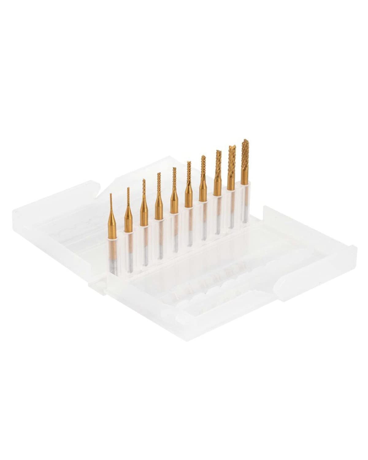 【セット内容】全長:38mm、切削エッジ直径:0.8mm、1.0mm、1.2mm、1.4mm、1.6mm、1.8mm、2.0mm、2.2mm、2.4mm、3.175mm。