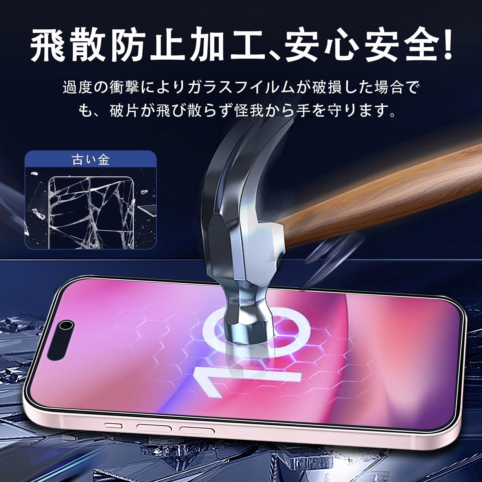 特徴 目の疲れを軽減、国産旭硝子素材製、硬度9H、指紋防止良い効果、気泡ゼロ、飛散防止、高感度
