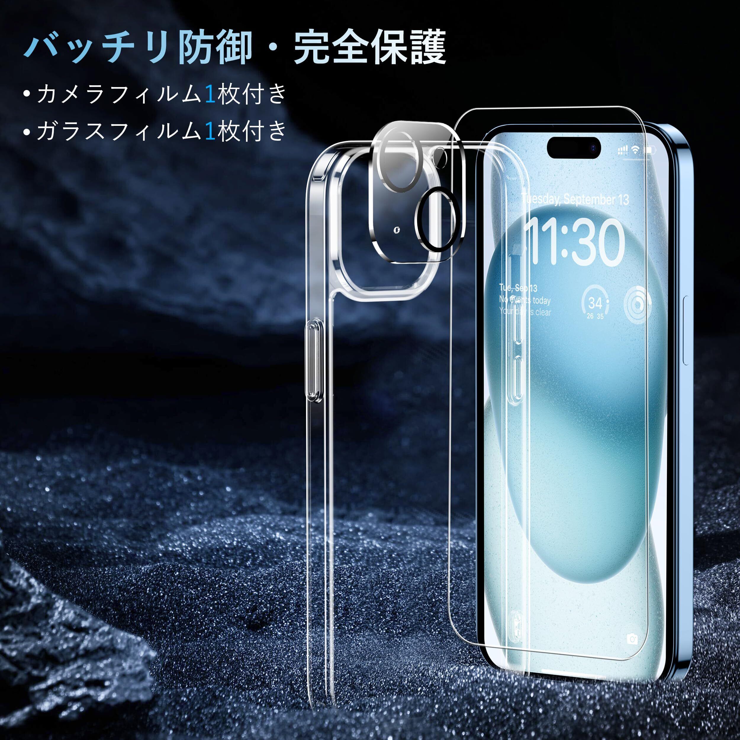 【高級感漂う・透明感抜群】 99.99%に持ち上げた透明感がiPhone15の美しさをそのまま。厳選した高透明度、更に耐黄変に強い特殊なポリカーボネート素材を採用、指紋がつきにくい・黄ばんでなく正真正銘のクリア!本来の崇高な美しさと高級感を損なわなく、いつものスマホに上品さをプラス。