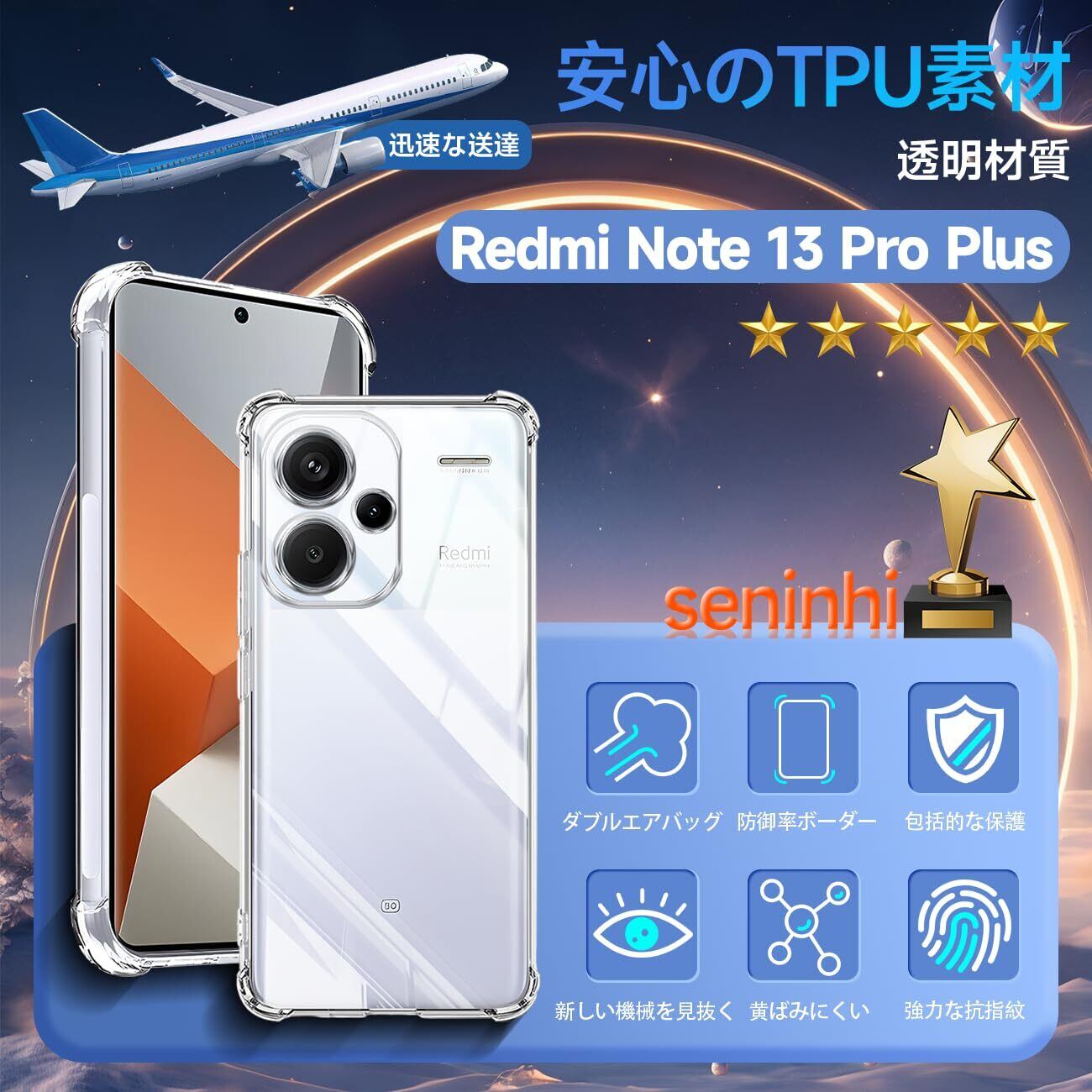対応 Xiaomi Redmi Note 13 Pro+ 5G ケース シャオミ Redmi Note 13 Pro Plus 5G クリア ケース あんしんファミリースマホ カバー TPU 保護ケース カバー背面 シェル クバー ソフト 透明シェル ンプロテクター SENXLL-Note13ProPlusT01