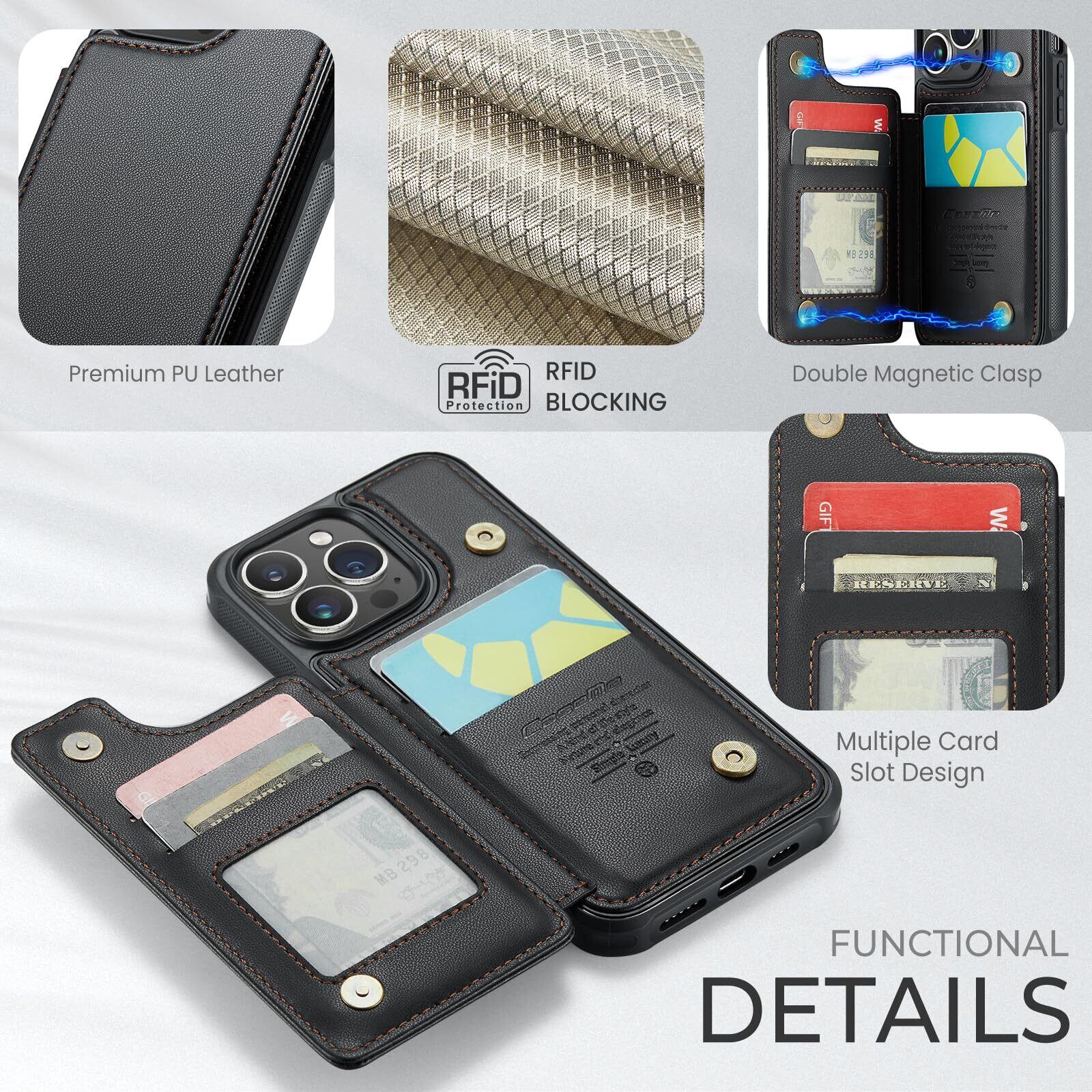 【JDDLang】 iPhone15pro ケース カード収納 15pro背面ケース 高級PU革 カード入れ付き 耐衝撃 滑り防止 アイフォン15pro 携帯カバー 背面収納 高級 PU革 スタンド機能 全面保護 手触りが良い 人気 上質 ブラック | impsmile