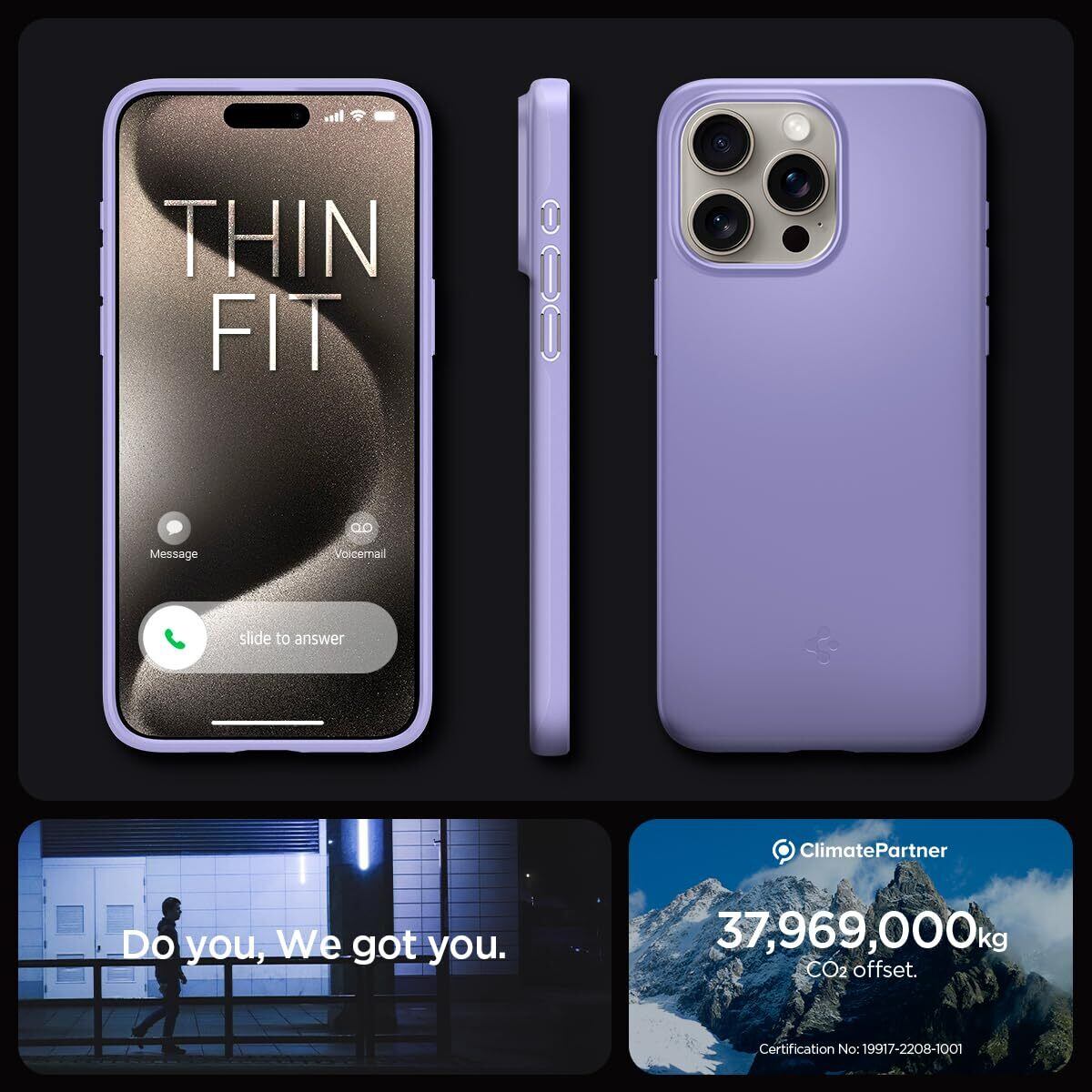 Spigen 【創業18年の技術力】 iPhone 15 Pro Max ケース マット 薄型 軽量 米軍MIL規格 指紋防止 ワイヤレス充電 シン・フィット ACS06549 (アイリス・パープル)