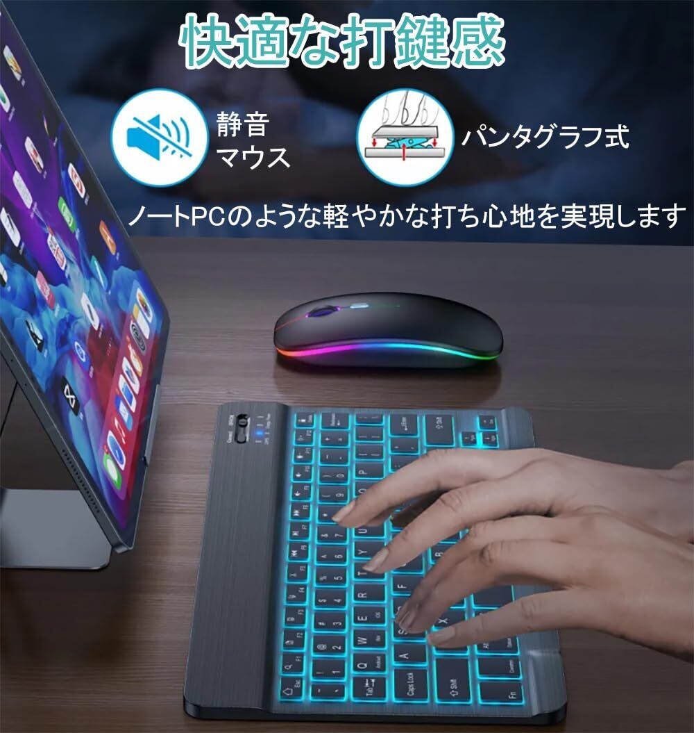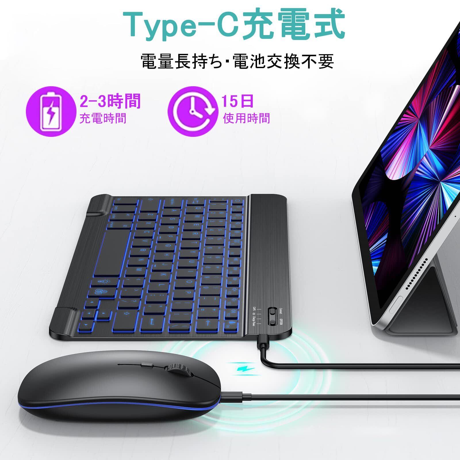 Bluetoothキーボードマウス iPad用 バックライト付き タブレット iPhone、スマホ対応 type-c充電式 英語配列 薄型 軽量 コンパクト アイパッド air pro mini keyboard(バックライト付き)