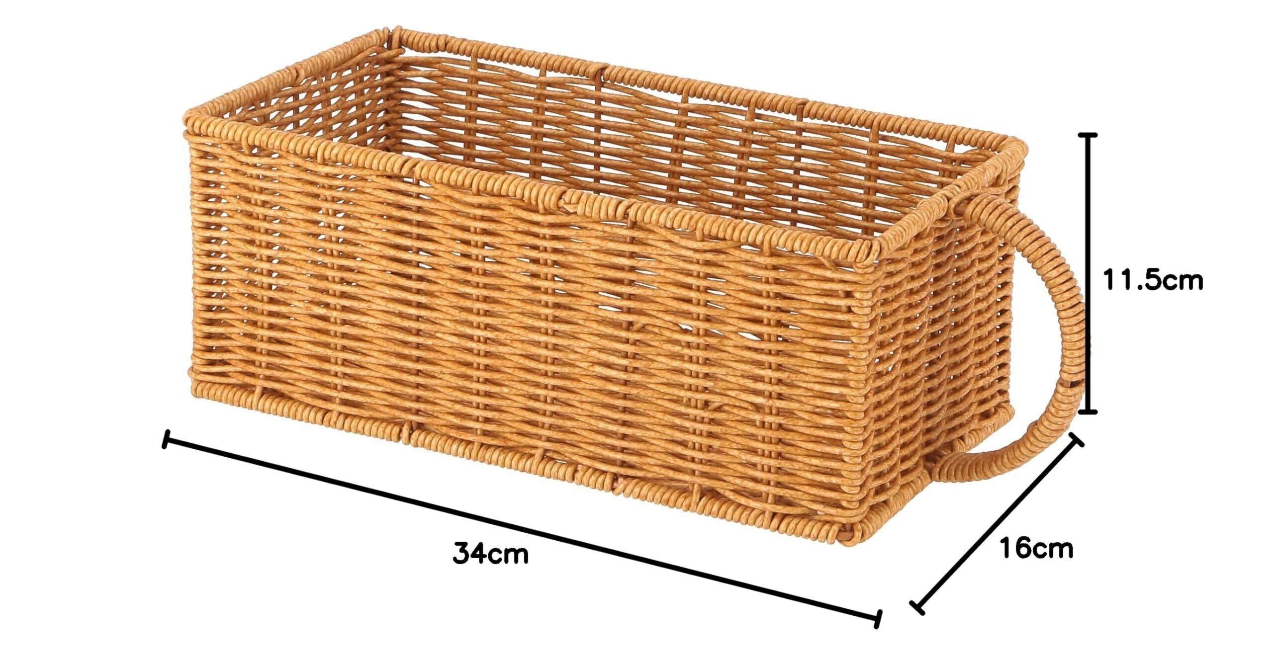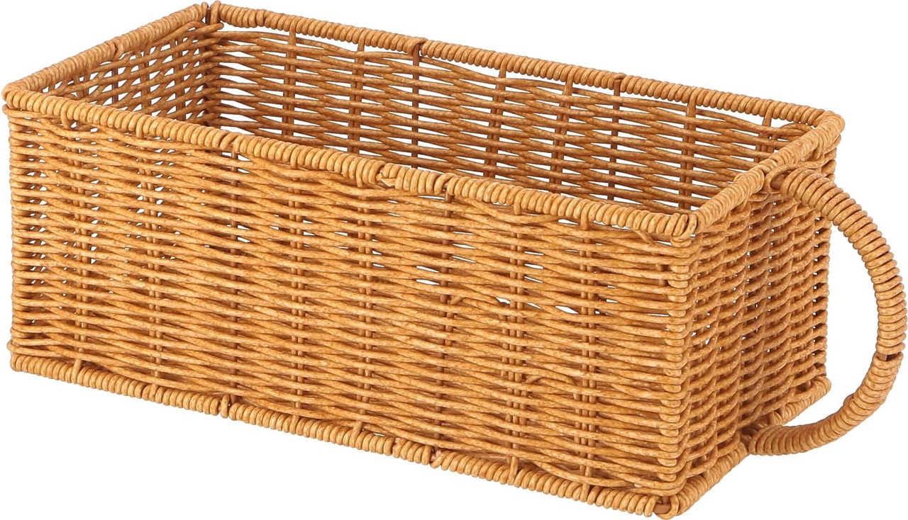不二貿易 収納バスケット 幅34×奥行16×高さ11.5cm ナチュラル 水洗い可能 ハンドル付き ハンドメイド 手編み 27874
