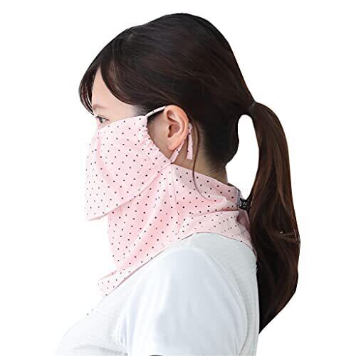 YAKeNU UV CUT MASK UVカットフェイスカバー ドットヤケーヌ 息苦しくないフェイスカバー (面ファスナー, 596 ピンドットピンク)