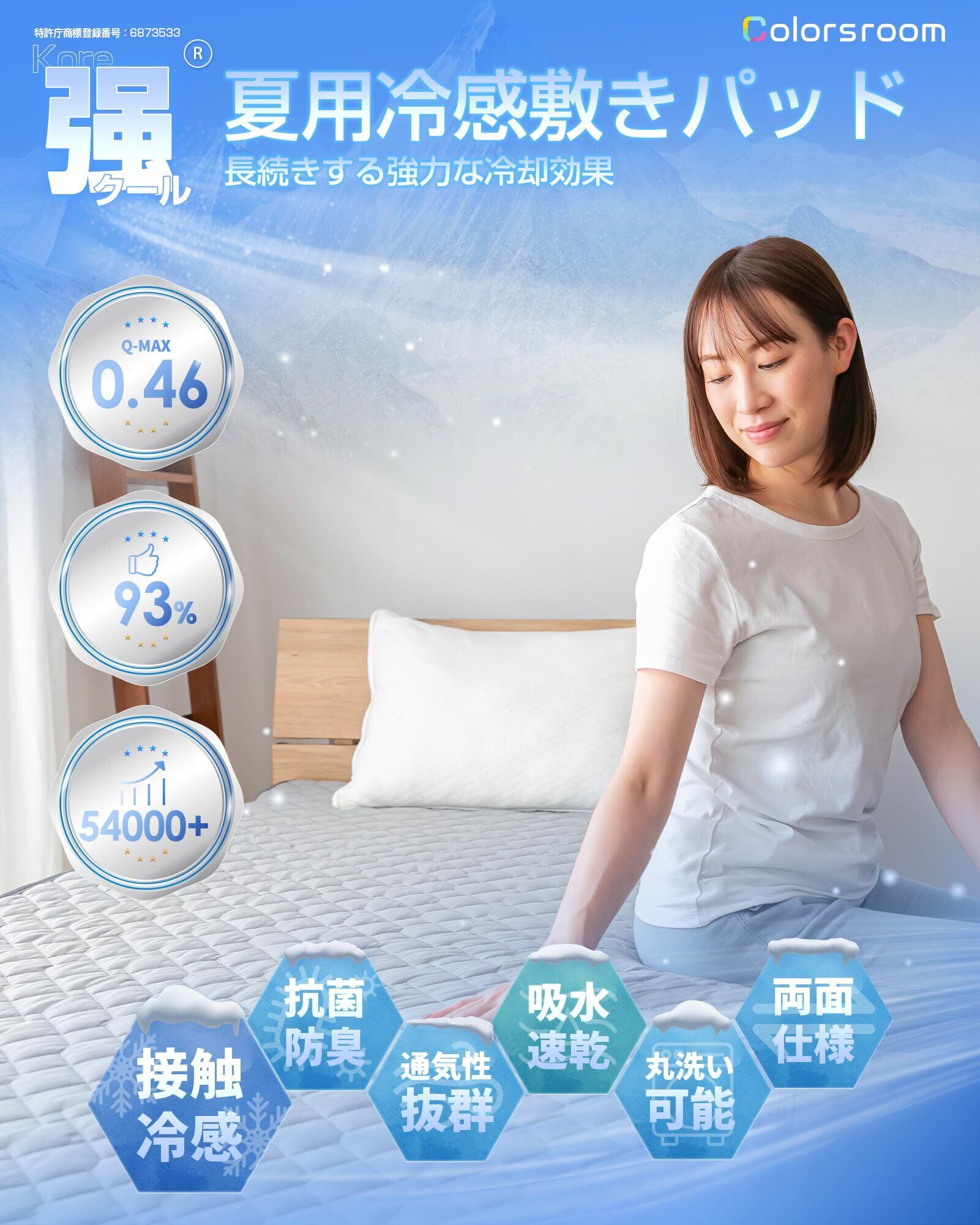 Colorsroom 敷きパッド シングル 夏 冷感 Q-MA×0.46 ひんやり リバーシブル TEIJINマイティトップⅡ追加 抗菌・防臭・防ダニ 吸湿速乾 クール 快眠寝具 洗える 夏用シーツ しきぱっと オールシーズン 100×200cm グレー | impsmile