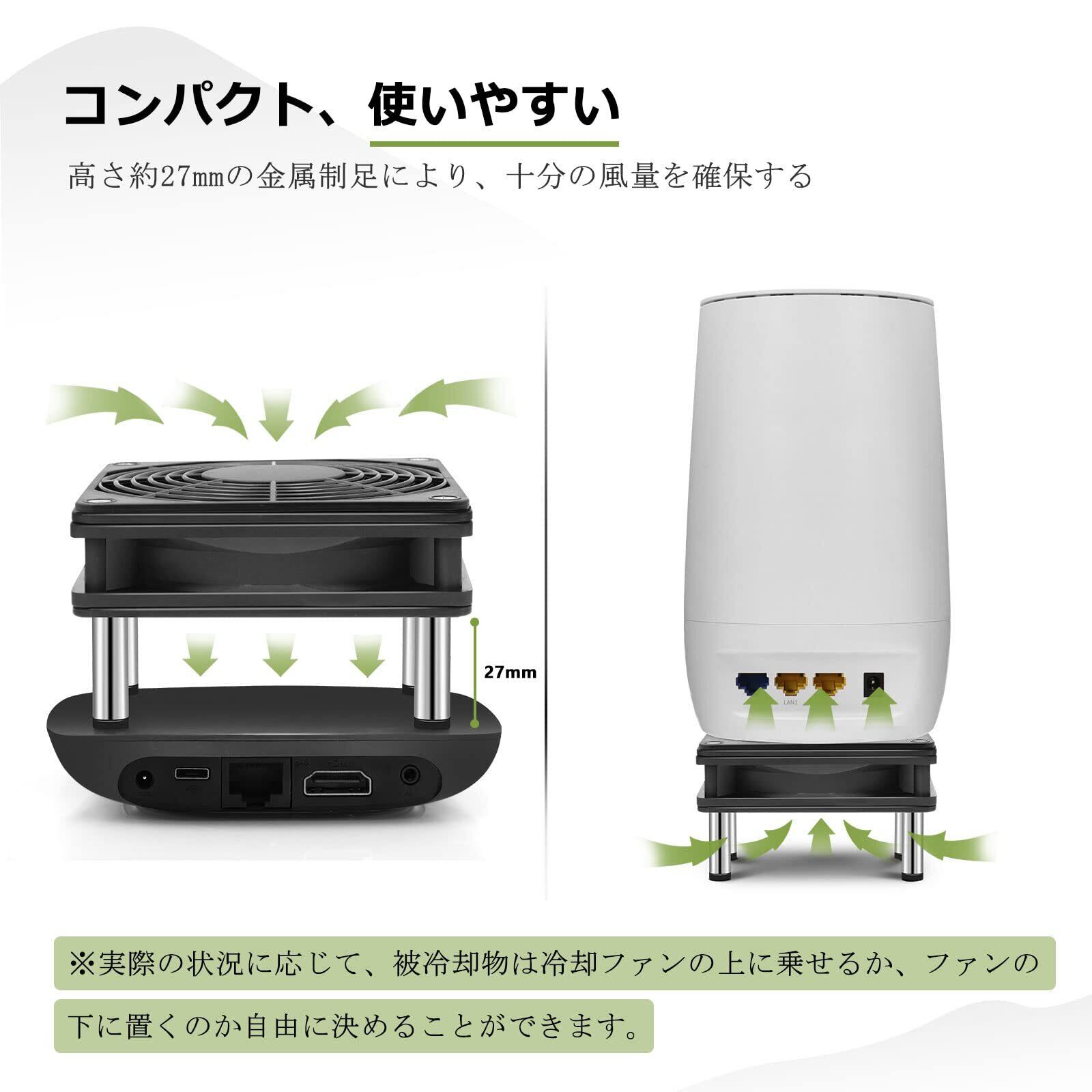 超静音設計、更に静音性に気になる場合、弱風モードに切替して、稼働音が全然聞こえないレベルです。無線LANルーター、AVアンプ 、充電中のスマホなど様々な電子機械を冷やします。