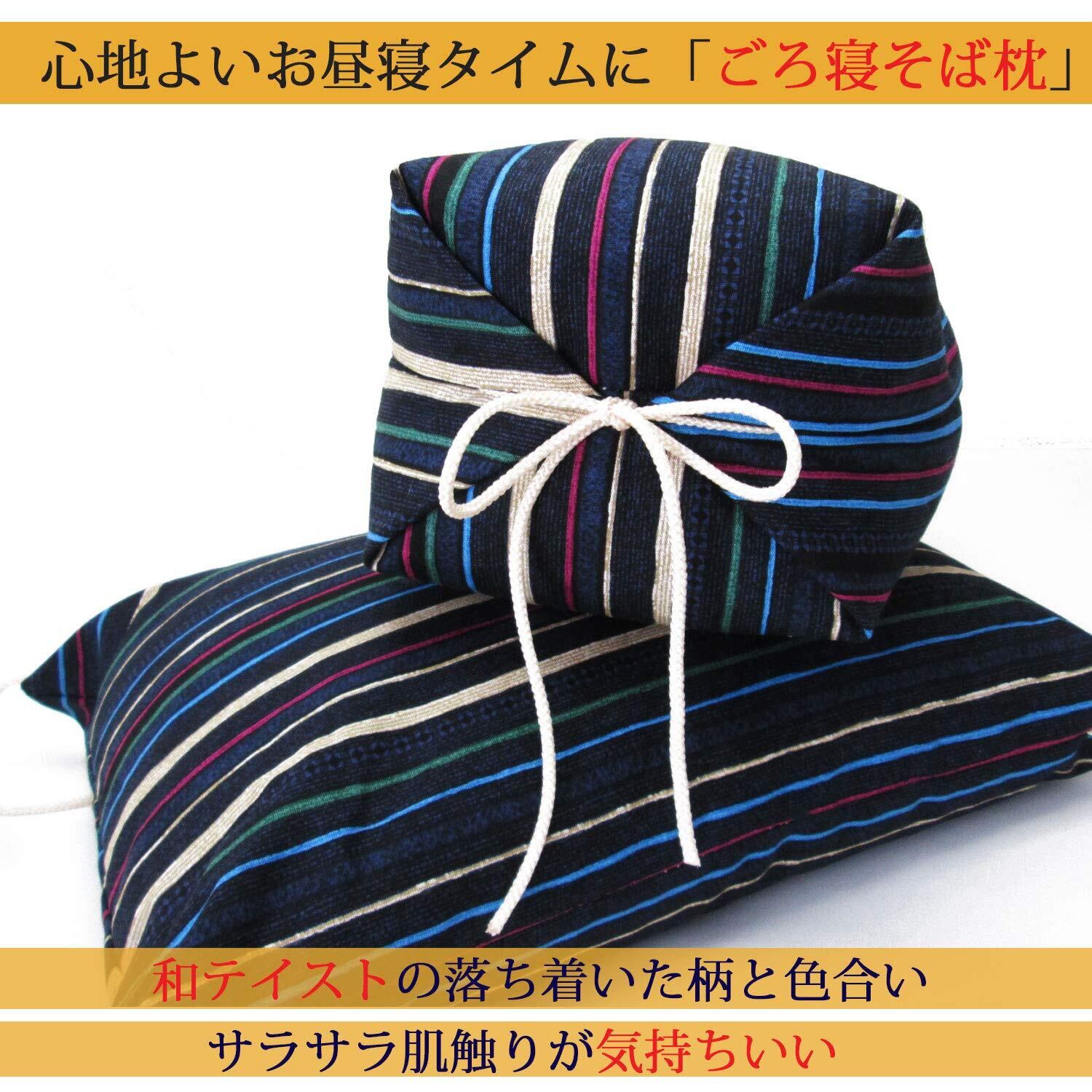 [MIKA&MAYA] 枕 安眠 そば殻 日本製 硬い 高め 高さ 調整 国産 低め 旅行 快眠 熟睡 首 頭 肩 固め (ネイビー)