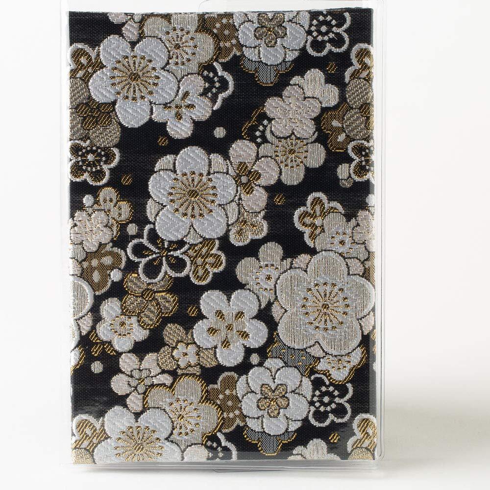 高知製本 ビニールカバー付き御朱印帳 黒地に梅佳境/西陣金襴/蛇腹式/大判/