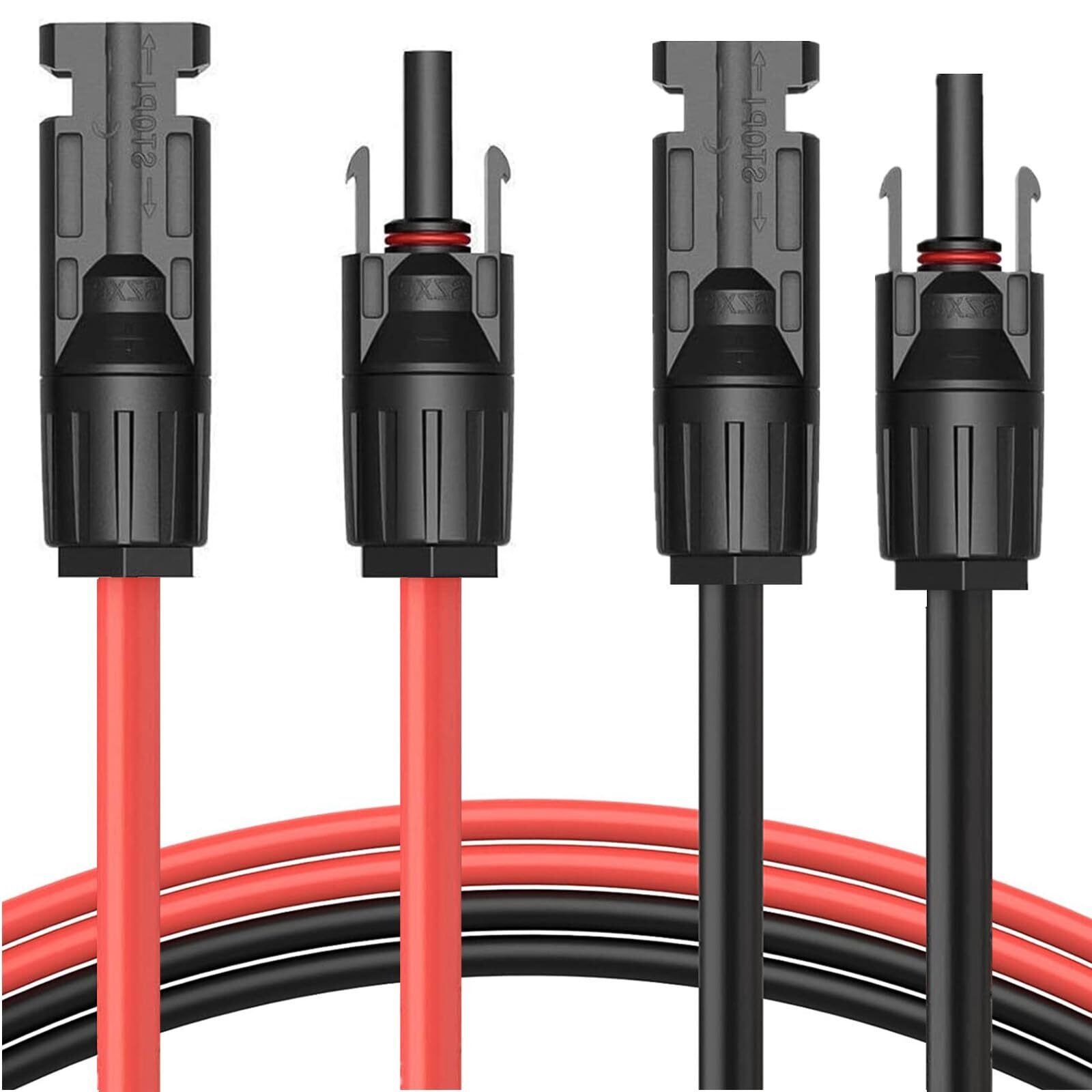 【仕様】規格:12AWG、断面積:4mm²、長さ:2M(赤い延長ケーブル*1本+黒い延長ケーブル*1本)、定格電圧:DC1500V、許容電流:30A、端子タイプ:MC4コネクタ(両端加工式)