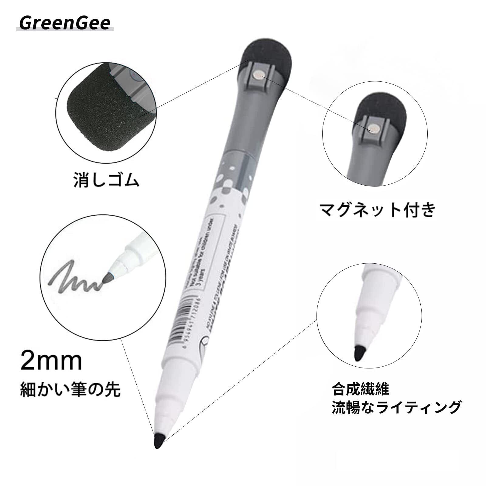 GreenGee ホワイトボード マーカー 極細 黑 6本入 マーカーペン マグネット付き 丸芯 2mm 消しゴム付き ホワイトボード用 ガラス/プラスチック/スムーズなデスクトップ 看板に書ける オフィス 家庭 学校用 持ち運びが容易