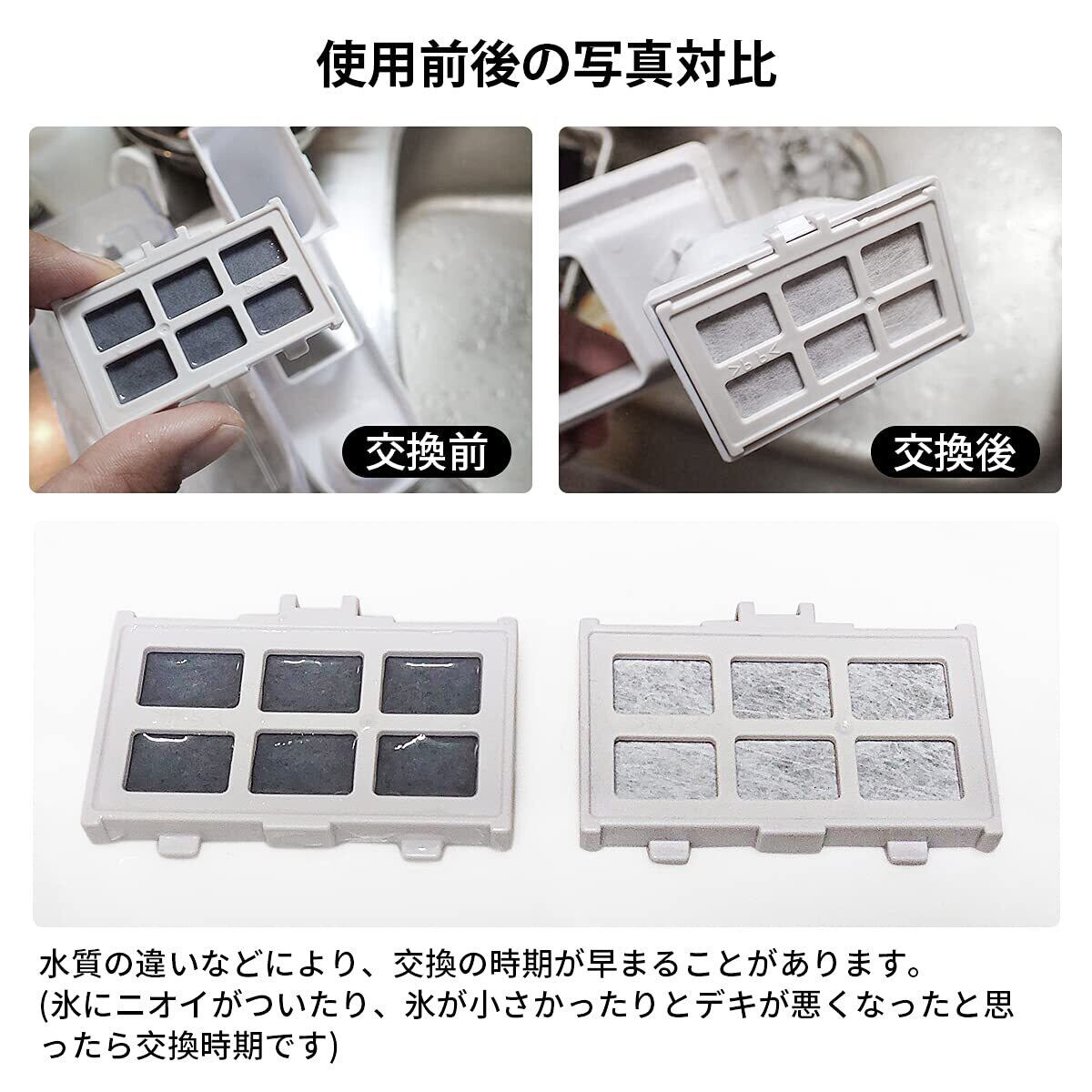 水質の違いなどにより、交換の時期が早まることがあります。(氷にニオイがついたり、氷が小さかったりとデキが悪くなったと思ったら交換時期です)