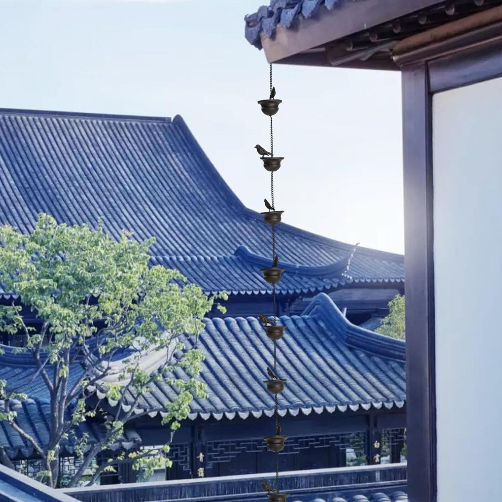Refoiner 雨樋雨 どい 部品 側溝用雨鎖 レインチェーン 可愛いカップの上に鳥鎖樋 カーポート 雨樋新居用 吊り下げ金属製風鈴 ウィンドチャイム癒し音 庭飾り 雑貨 室外室内装飾ギフト 取り付け簡単長さ2.4M