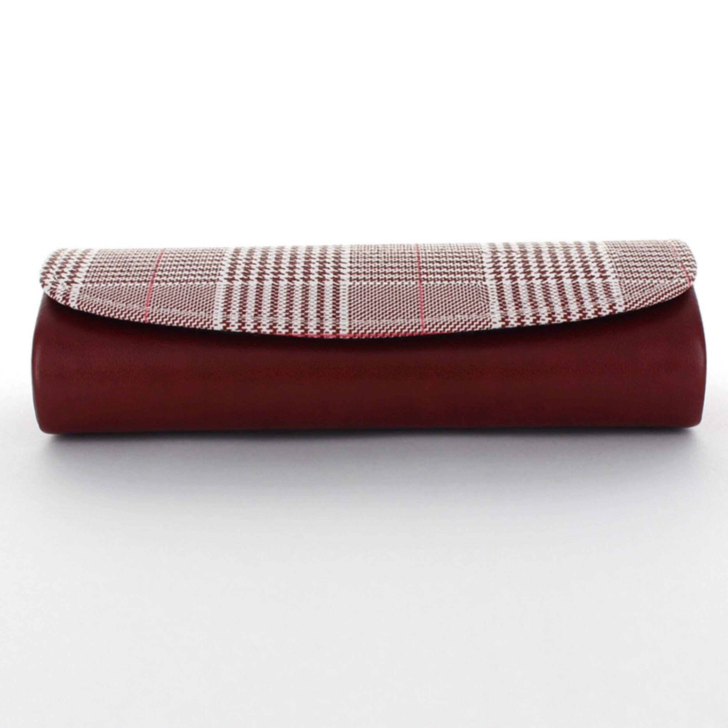 定番チェック柄で幅広い層に人気の柄のセミハードメガネケース。ベースケースには光沢の有るエナメル風生地を使い、アッパーには細チェックで綺麗にまとまったデザインです。まさに老若男女御用達のデザイン。マグネット式で開閉が心地よくストレスフリー。