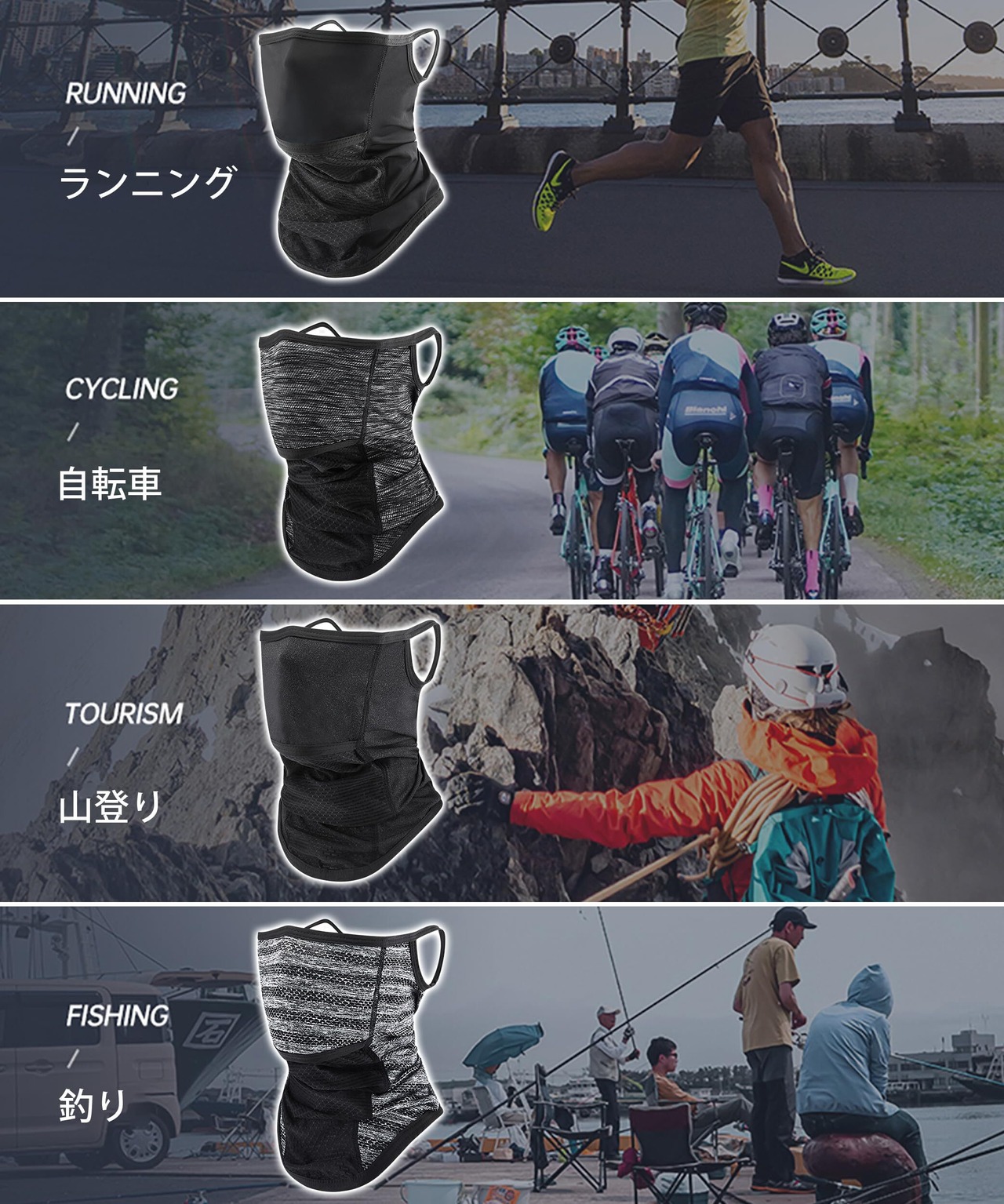 [Andeor] 【自転車選手が愛用】 フェイスカバー ネックガード 夏用 【新開口デザイン・接触-5℃冷感技術】ネックウォーマー 耳かけ 呼吸しやすい