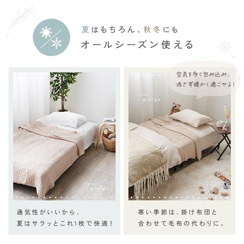 ️【オールシーズン使える理由】このガーゼケットが一年中快適な理由は、その絶妙なガーゼの機能性にあります。普通のガーゼとは違う「モスリンコットン」を使用しており、通気性抜群で、暑い季節でも蒸れにくい。汗をしっかり吸収するので、夜もさらさら快適。保温力が高いため、肌寒い季節にも暖かく包み込むのが特徴です。