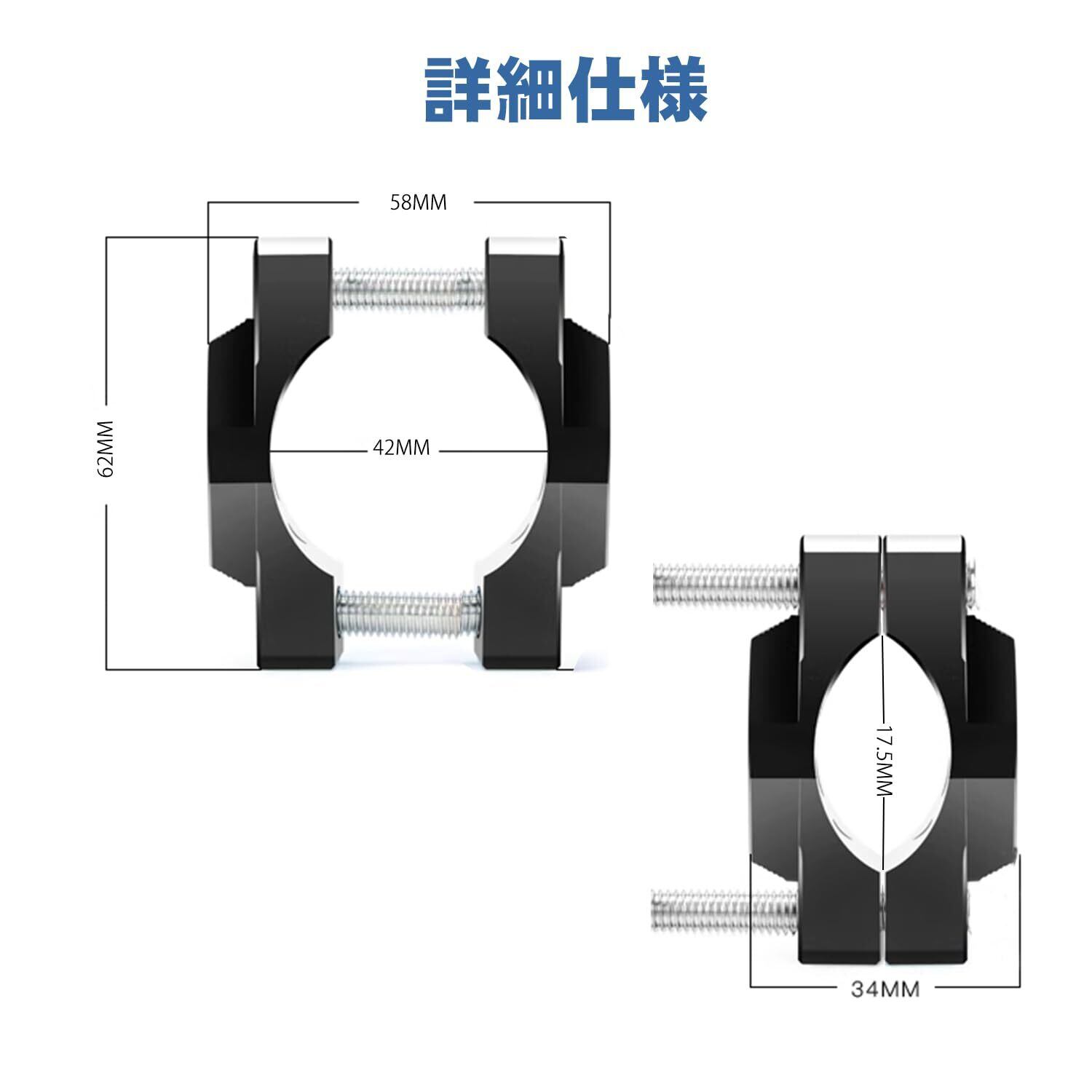 【幅広い適用性】LEDフォグランプ、作業灯、投光器、サーチライト、デッキライトなどの 固定用小型のブラケット。バイク、オフロード、ATV、UTV、SUV、トラック、ジープ、ボート、農業機械、自動車、トレーラー、フォークリフト、クレーン、ブルドーザー、トラクターなどのパイプ幅広くお使い頂けます。
