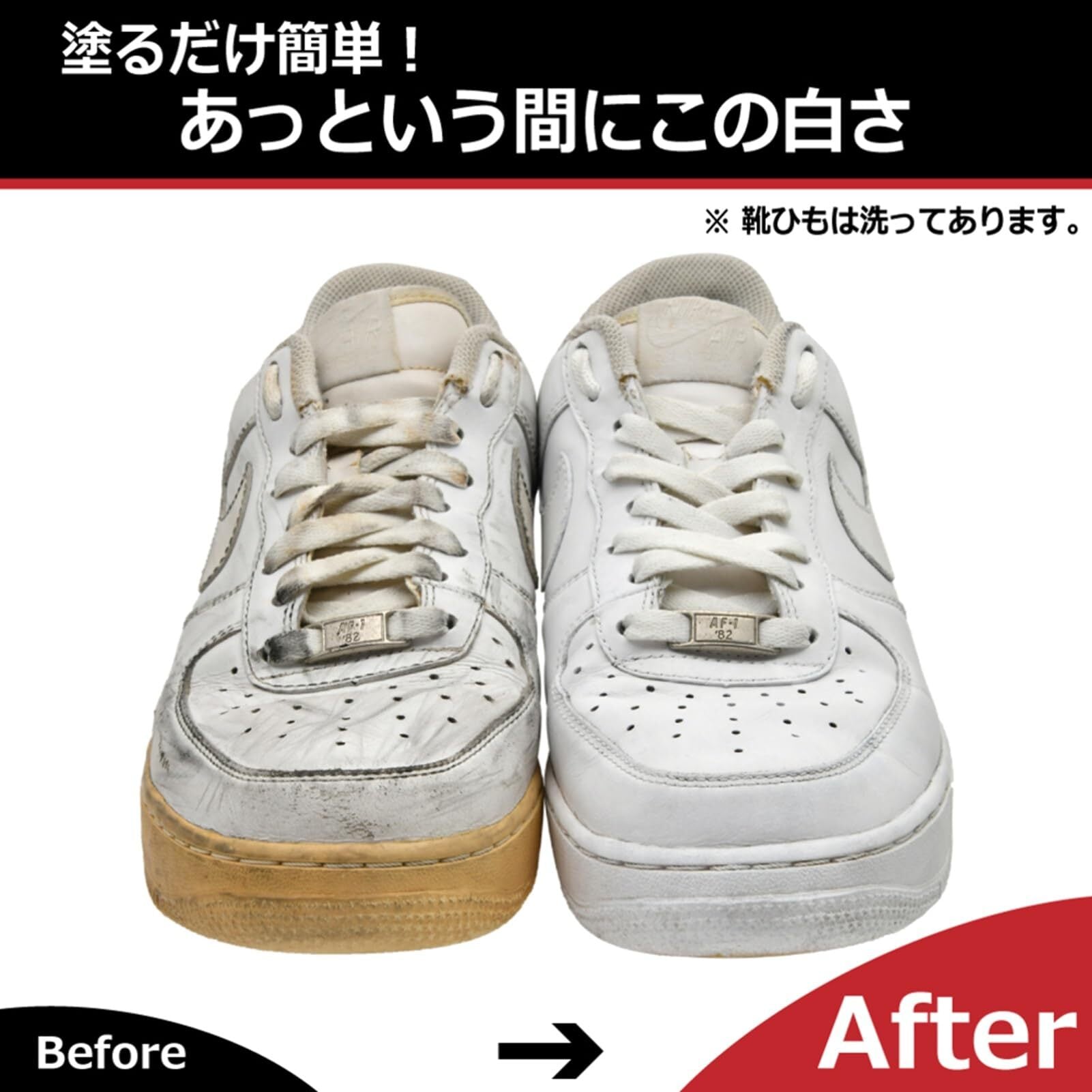 【スニーカーの白さが復活!塗るだけ簡単、ホワイトニングリキッド】一般的な靴クリームでは隠せないキズや、こすれ・色あせにもしっかり定着して、白さをよみがえらせます。