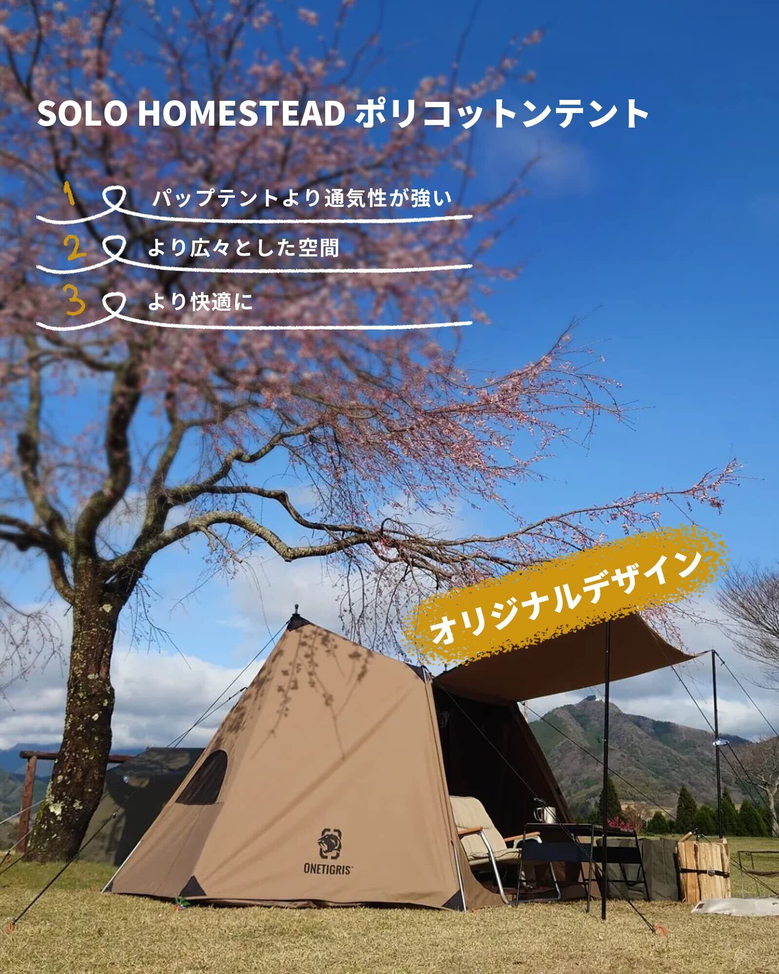 OneTigris SOLO HOMESTEAD TCテント パップテント 軍幕 ポリコットン素材 通気 設営簡単 耐久 ソロテントポール付き グランドシート付き キャンプ 焚き火 ツーリング 1-2人用 家族用 | impsmile