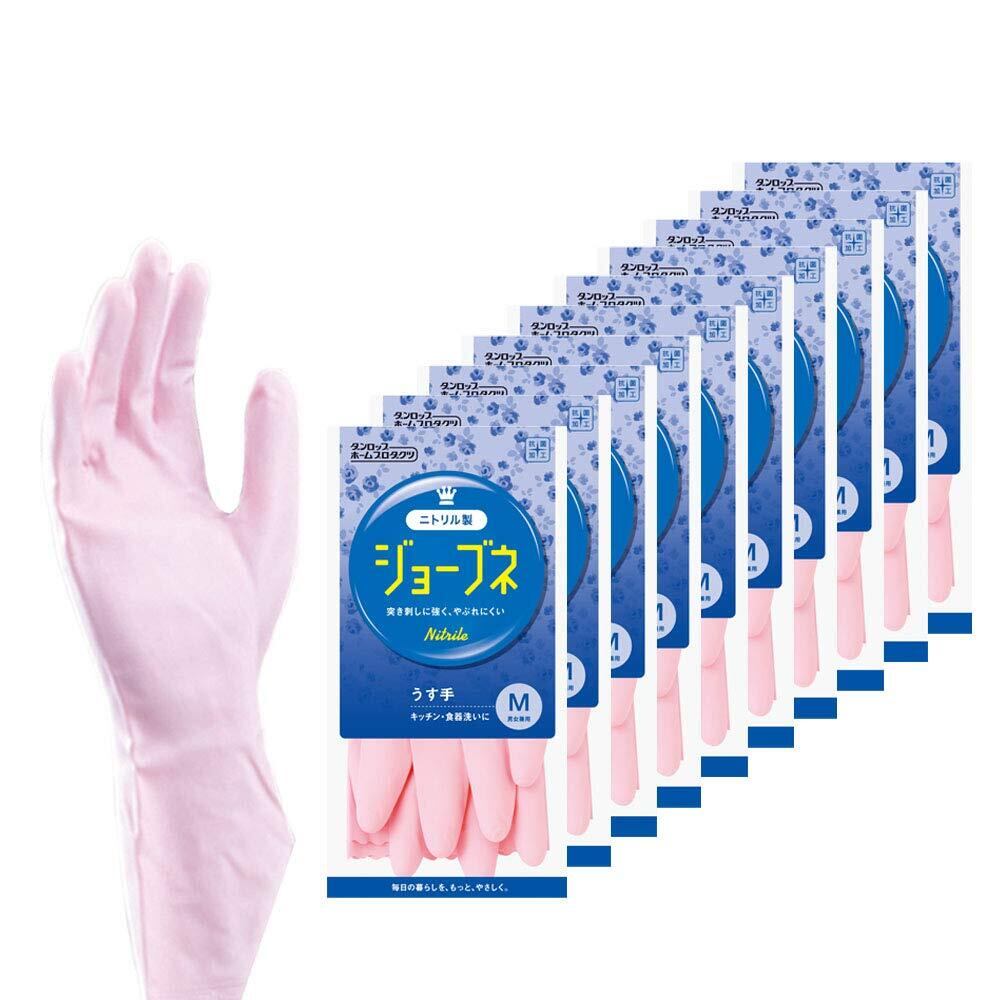 [ダンロップホームプロダクツ] ニトリル手袋 うす手 M ジョーブネ 10双セット ピンク 長さ約30cm 10双入