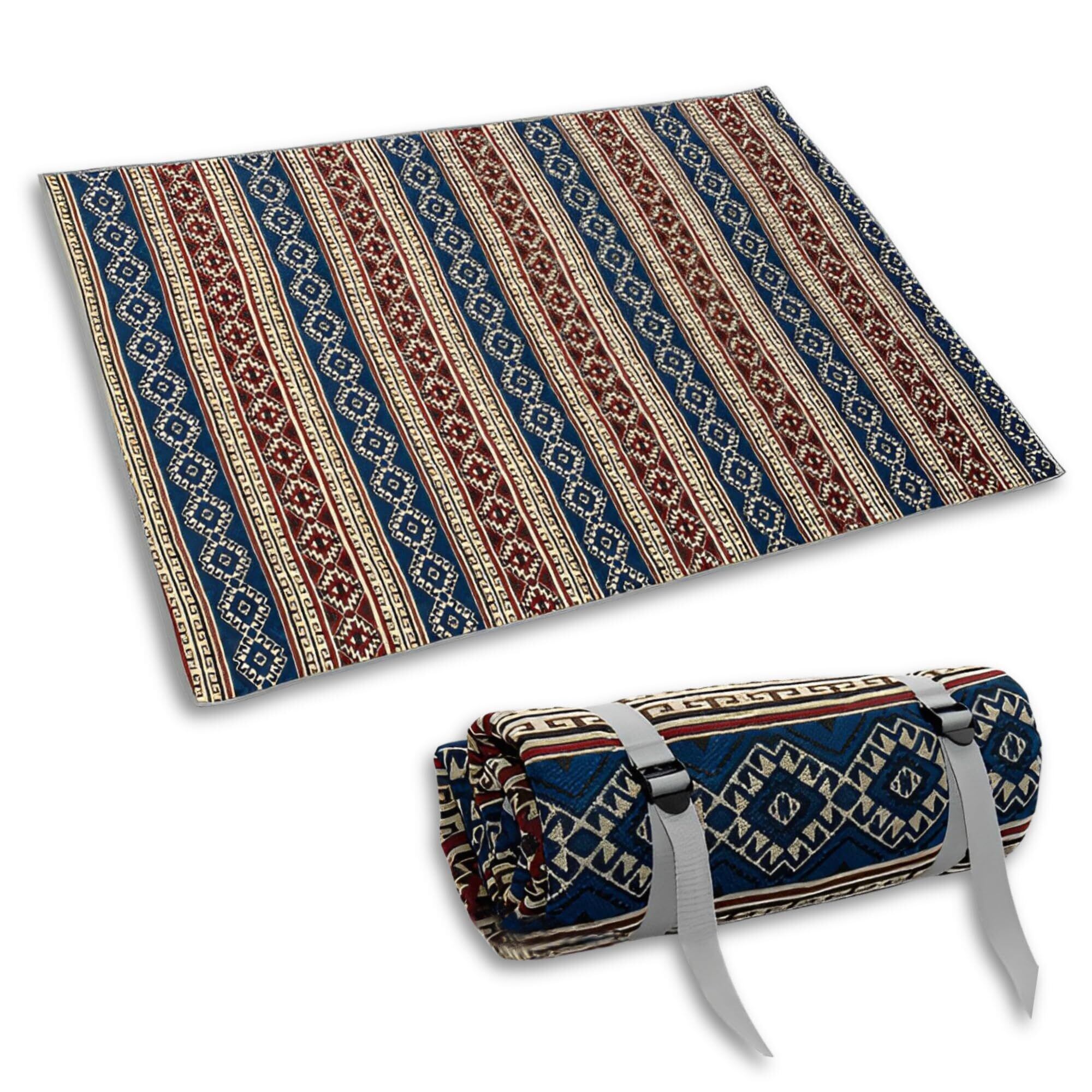 AZ-FRONT 多機能キャンプラグ 防水・防湿200cm×145cm アウトドア&ピクニック用 地面ラグ (ブルー&レッド)