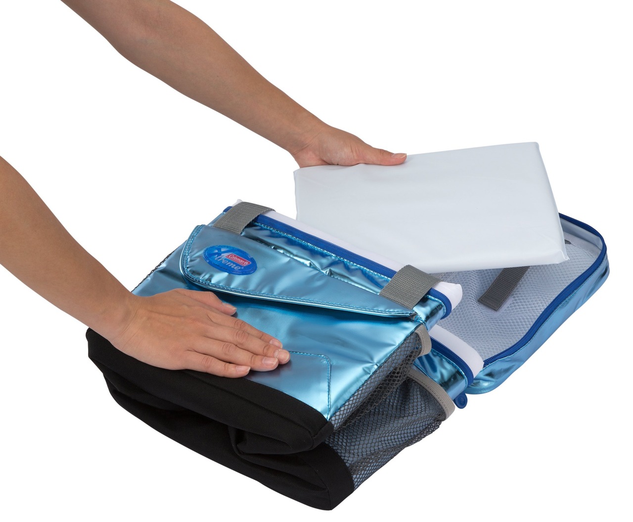 【冷気をブロック】上部に取り出し口(クイックサーブオープニング)があり、クーラー内の冷気を逃す事なく中の物を素早く簡単に取り出すことができます。また、メインファスナーから冷気を逃さないように断熱フォームでカバーする設計となっています。