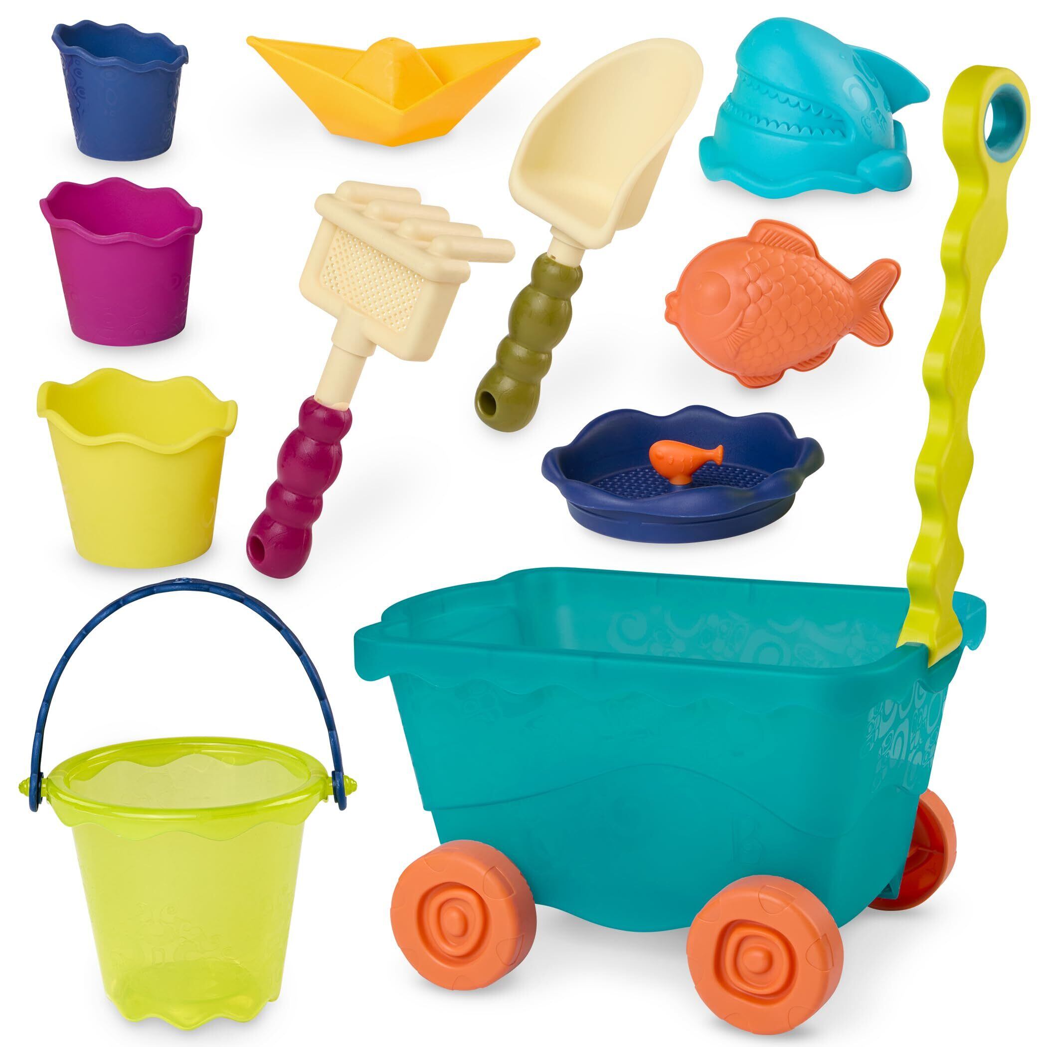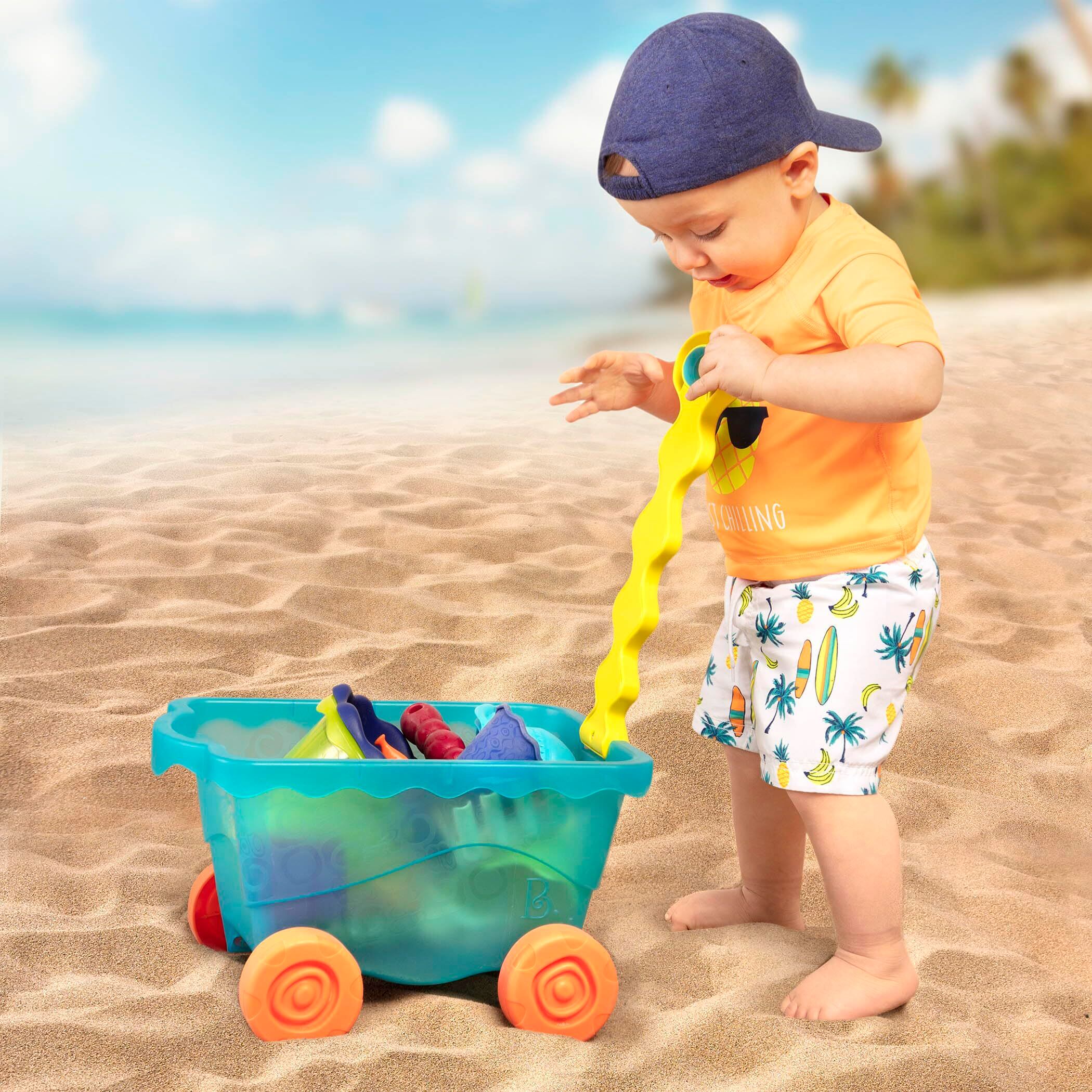 B. toys 砂場セット トラベルビーチワゴン 砂遊びおもちゃ11点セット (ブルー) 1歳半~ 正規品