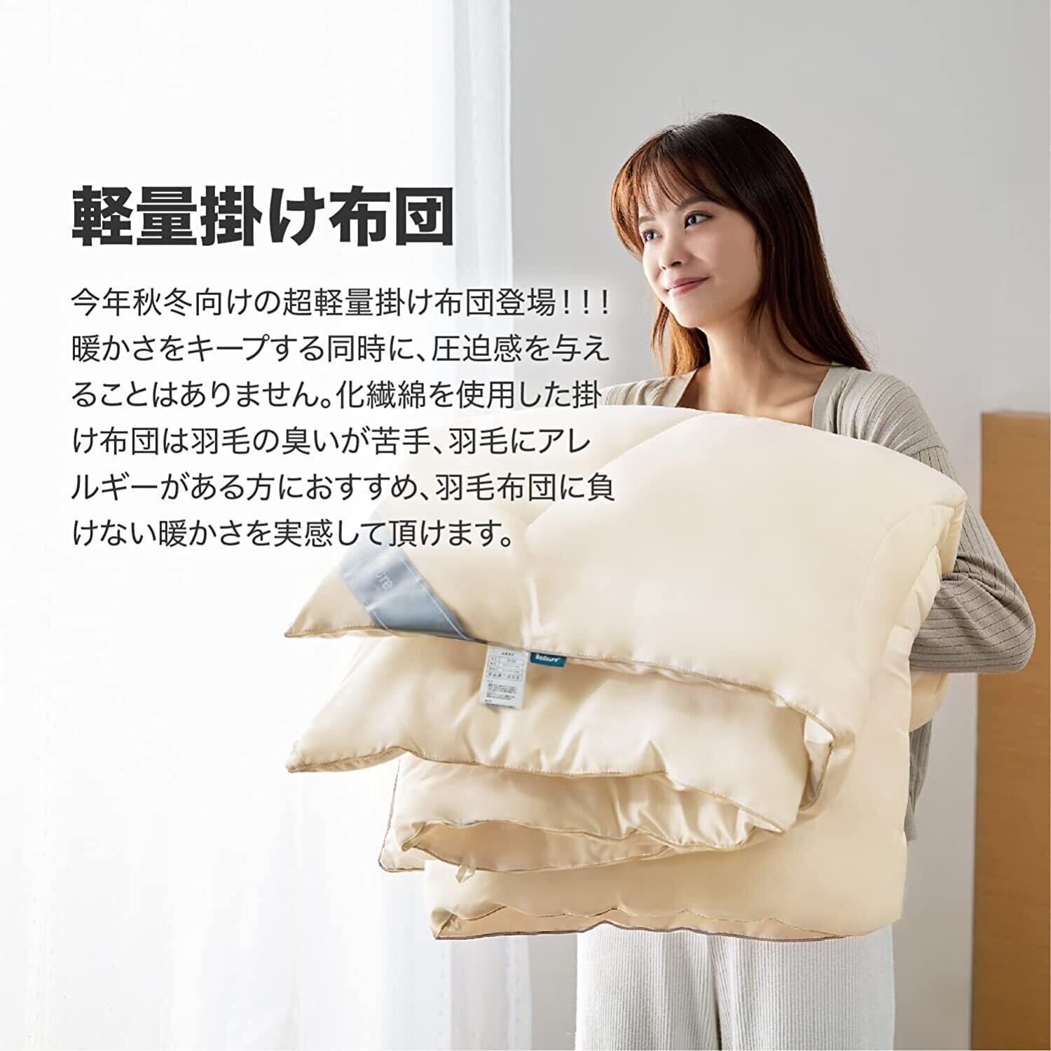 柔らかな肌触り:掛け布団の表裏はどちらもポリエステル100%で、中綿もポリエステル100%で、超極細繊維構造が空気をたっぷり含み、軽やかに身体を包み込み、よりリラックスした睡眠を提供します。女性でも持ち運びが簡単!来客用としても最適です。