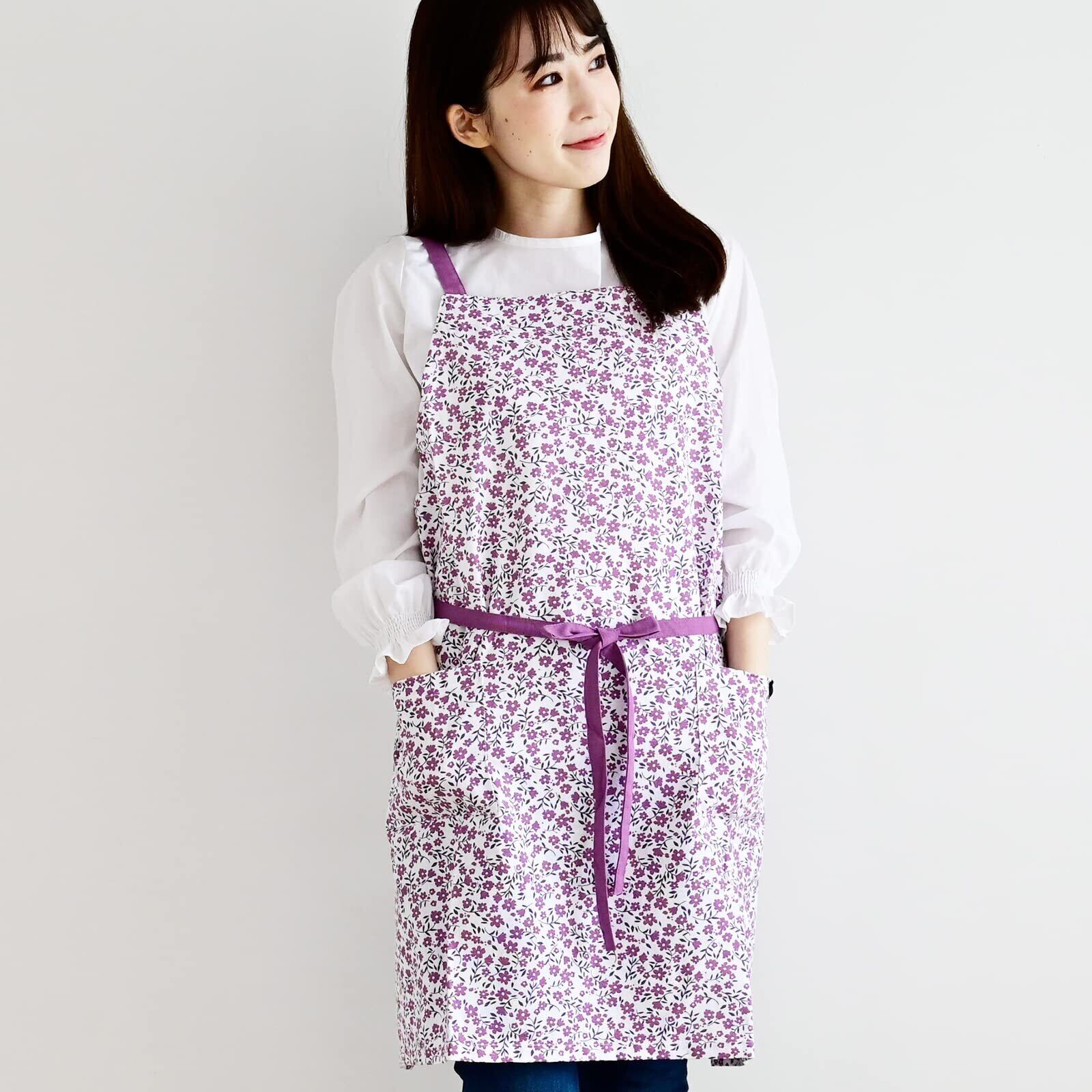 レップ(Rep) エプロン レディース 北欧 ポケット2個付き 花柄 おしゃれ 着丈73cm (アビチュアル バレッタ) パープル PU 540756-MAIL プレゼント