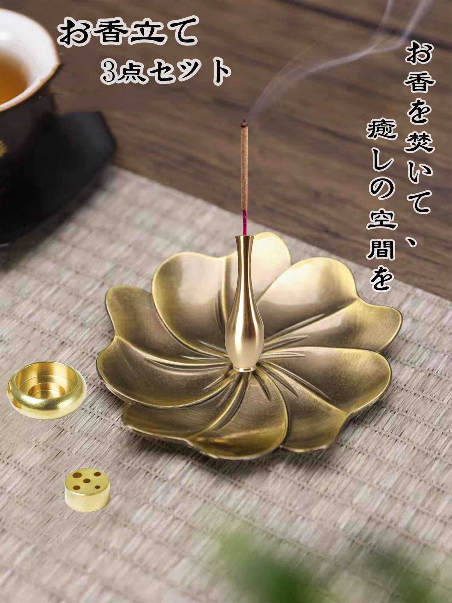 GRTUFOBA お香立て 3個セット 可愛い 線香立て 小さい 香炉 香皿 真鍮 仏壇用 ペット用 お香立て 御洒落 持ち運び便利
