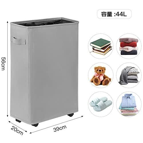 UZENN 45L キャスター付き ランドリーバスケット 折りたたみ洗濯かご スリム メッシュ 洗濯カゴ 持ち手付き 収納ボックス 防水コーティング 39×20×56cm
