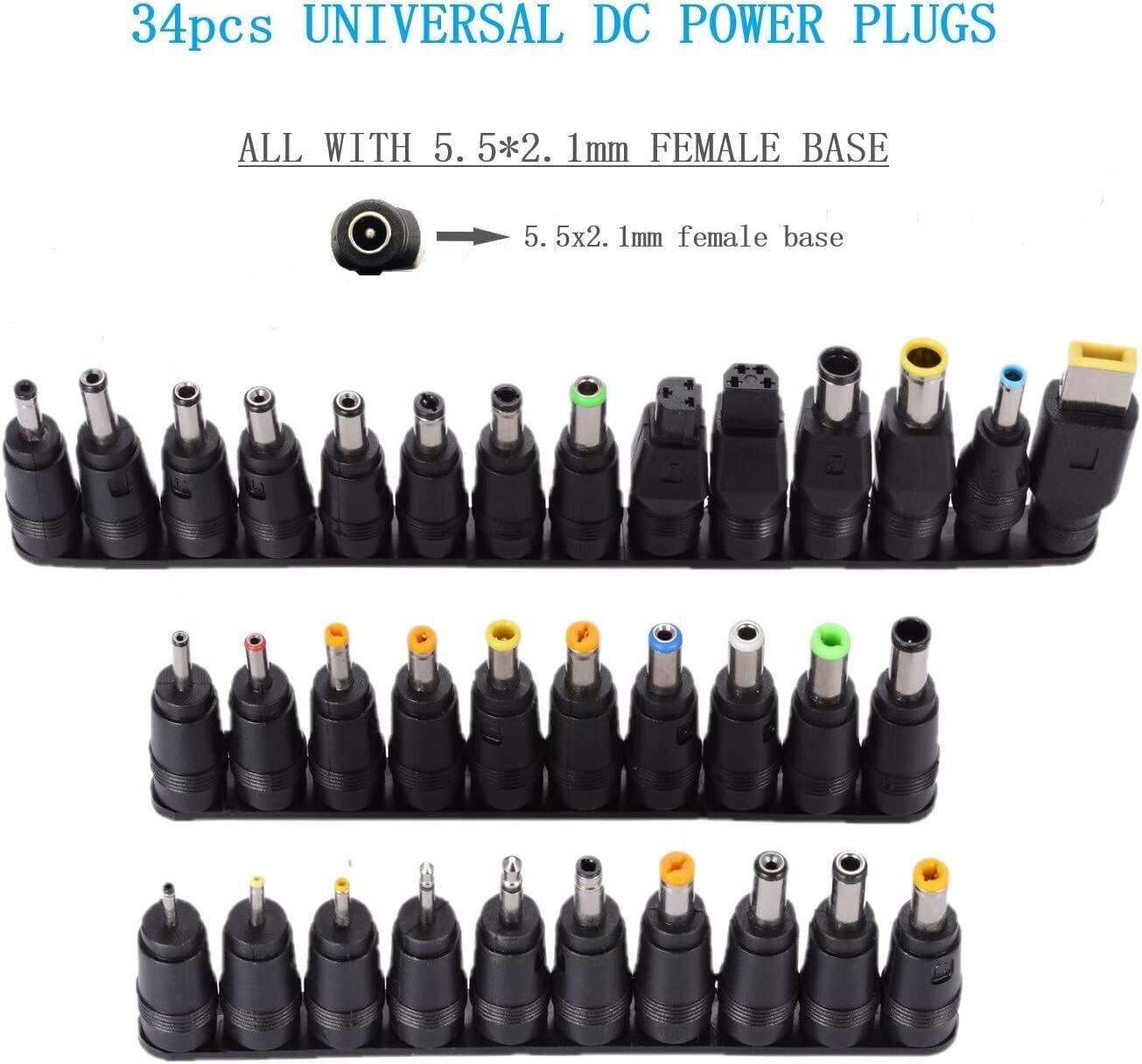 34個の最新版DCプラグはほとんどのデバイスに対応できます。すべてコネクターのメス側のサイズは5.5*2.1mmです。