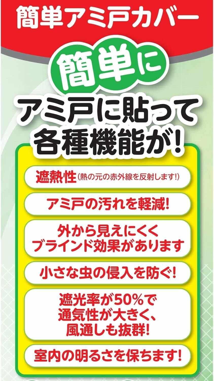 遮熱して、ホコリや虫を防ぐ、アミ戸のカバー!付属の両面テープで貼るだけの簡単取り付け。遮熱効果があり、適度な遮光性・通気性があるので、お部屋を快適に。通常のアミ戸に比べ、目が細かいので、ホコリや小さな 虫 の侵入を防ぎます。外から 見えにくい ので 目隠し としても。