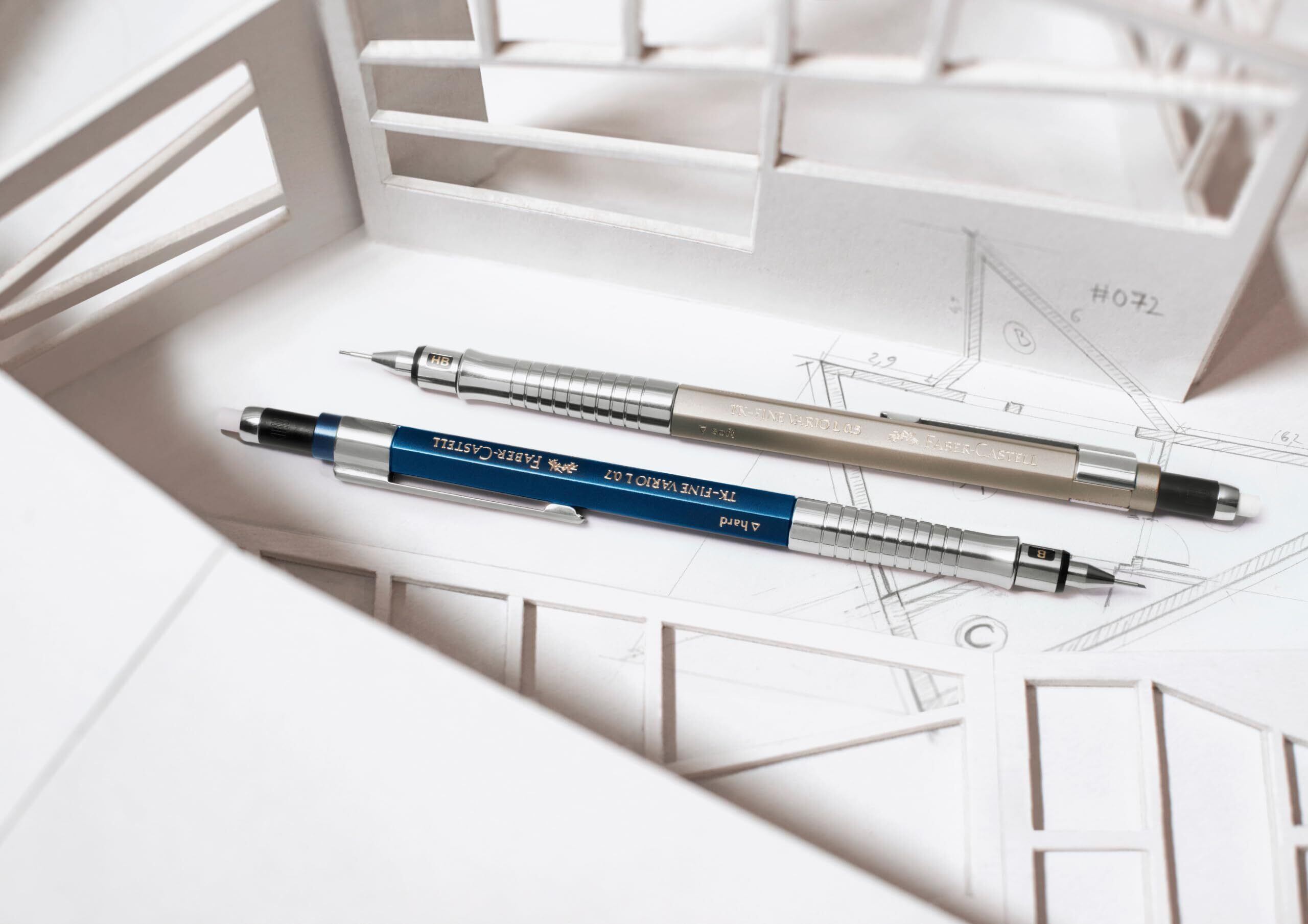 正確な図面作成に使う製図用シャープと、なめらかな書き味の一般筆記用シャープの両方の機能が、軸部を回すことで簡単に切り替えられるという多機能性シャープペンです。