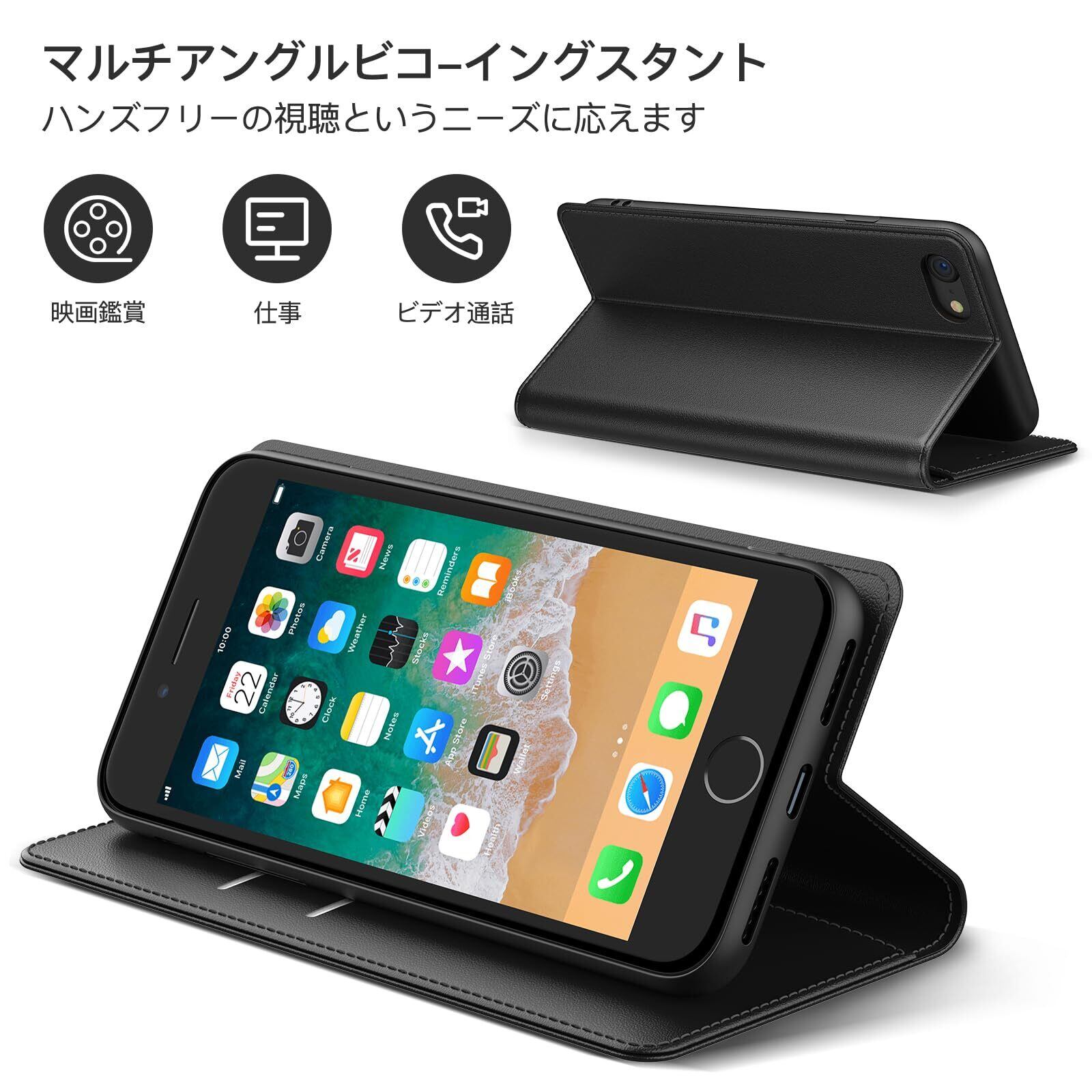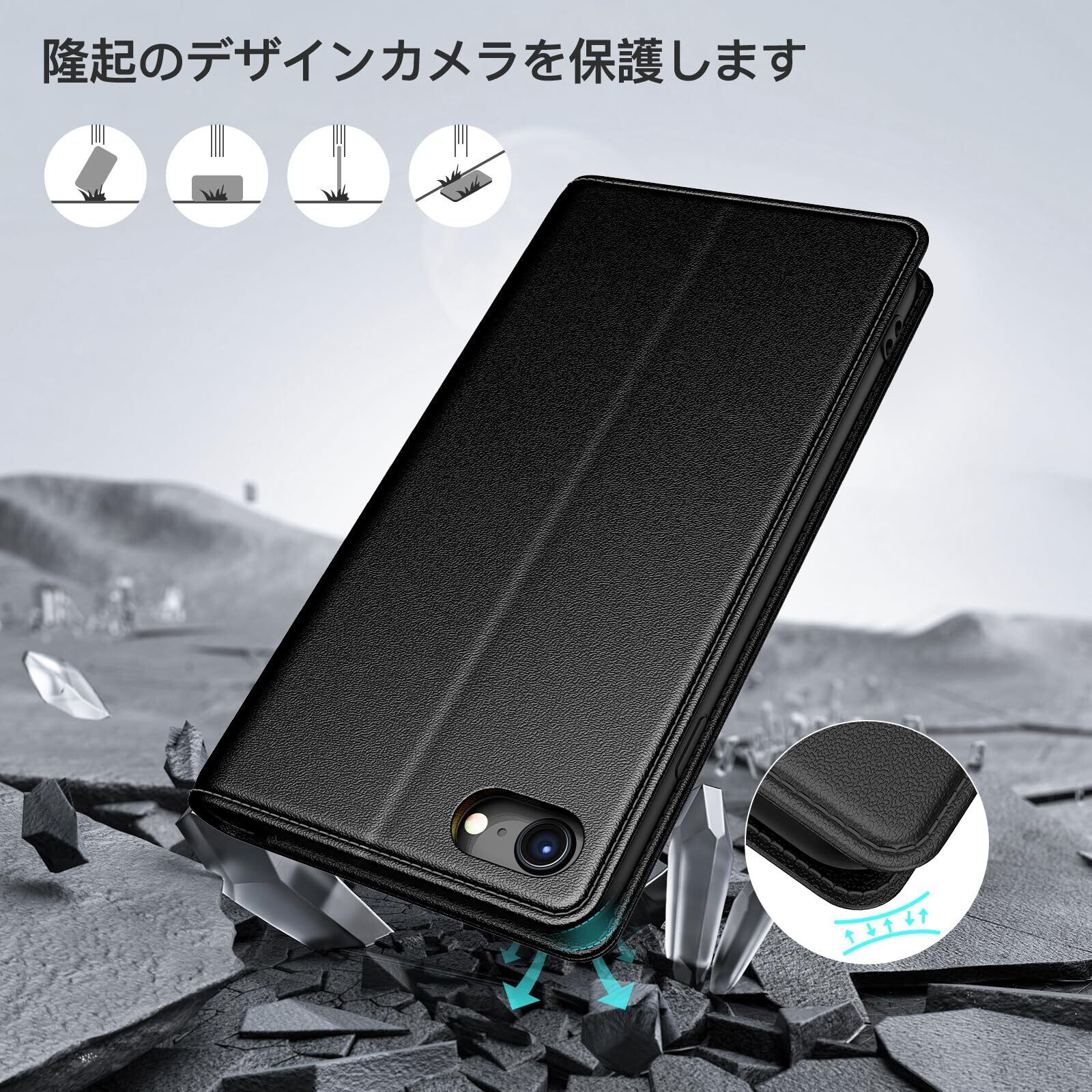 Peakally iPhone SE ケース 手帳型 iPhone se3/ iPhone se2/iPhone8/iPhone7/iPhone6s/6 手帳型スマホケース カード収納 財布型ケース マグネット式 高級PUレザー スタンド機能 360度保護 耐衝撃 (ブラック)