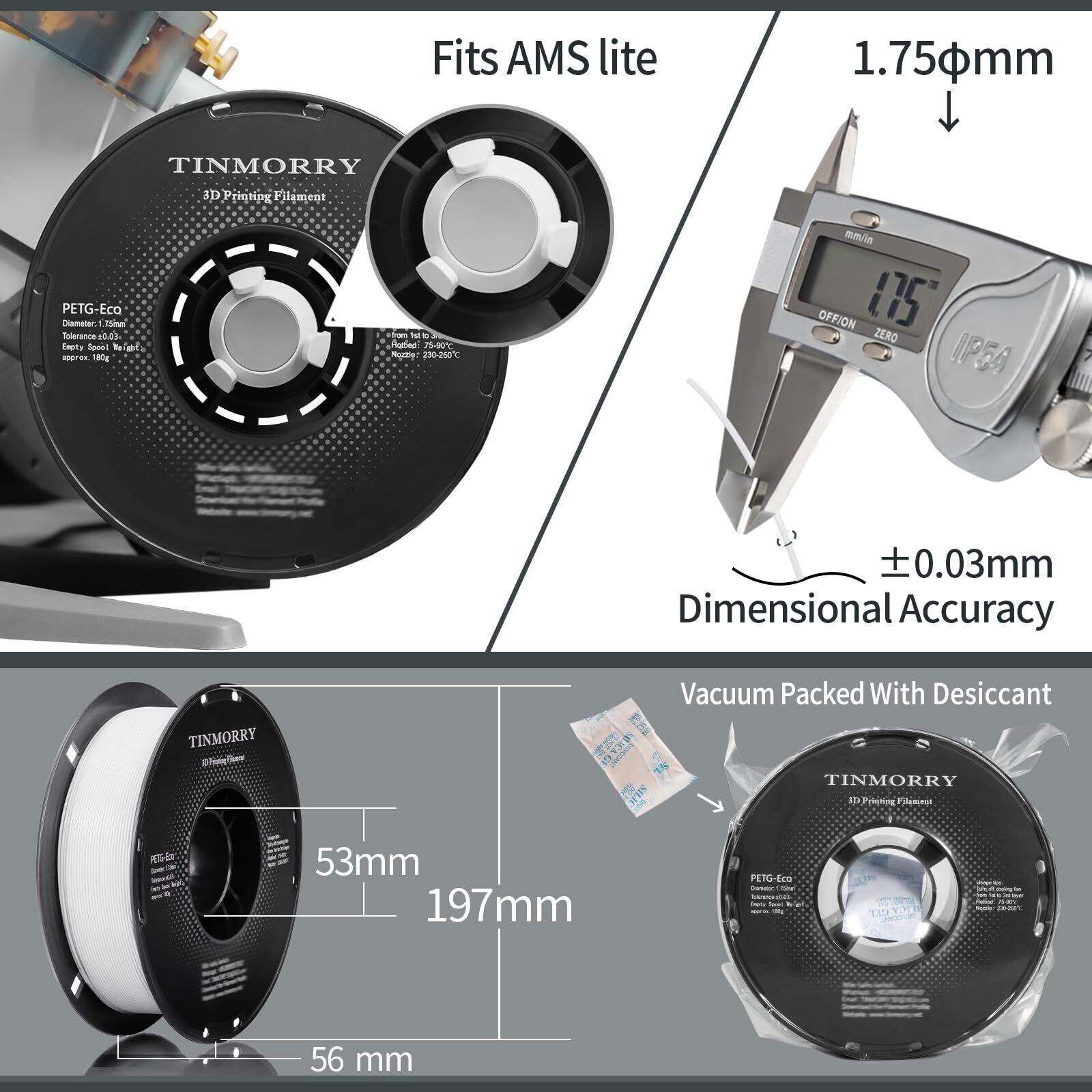 フィラメント PETG 1.75mm,【TINMORRY】300mm/s 高速 PETG 3Dプリンター用フィラメント 1.75mm 1Kg クールホワイト, Bambu Lab FDM 3DプリンターおよびAMSと100%互換性があります (3D Printer Filament Cool White)