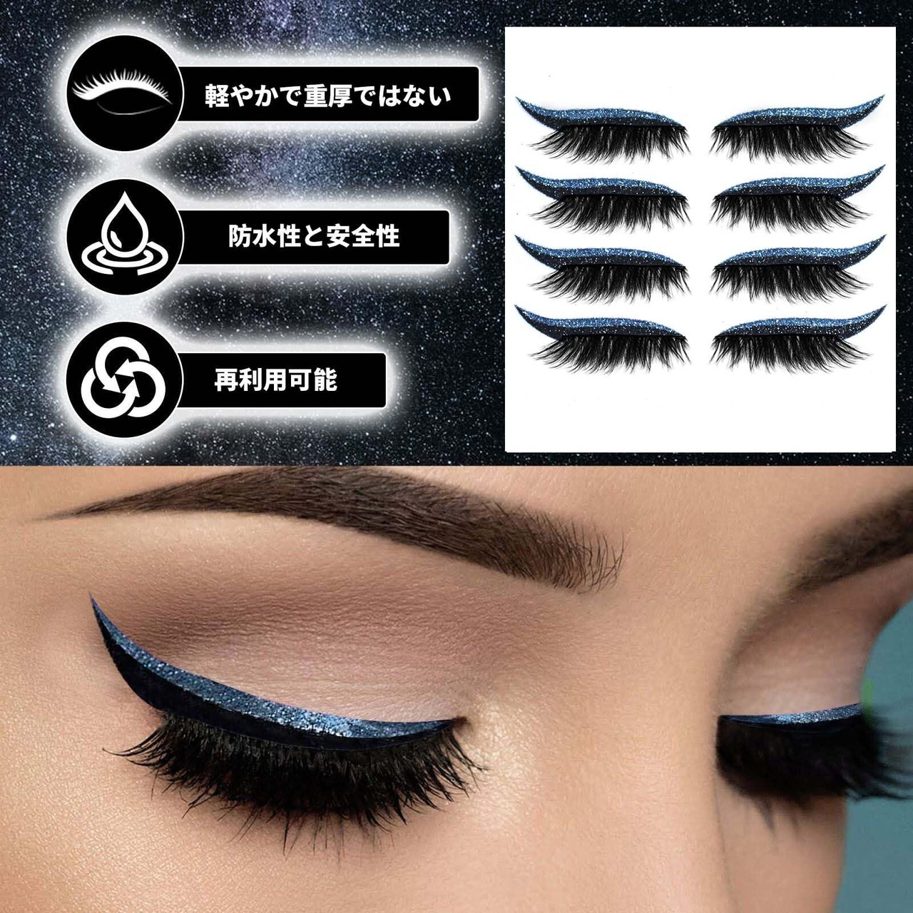 PAVIKE つけまつげ ステッカー アイライナー アイメイクツール 4ペア入り 柔らかい 人気 自己接着 つけまつげ 超濃密 欧米風 派手 舞台用 メイクアップ用