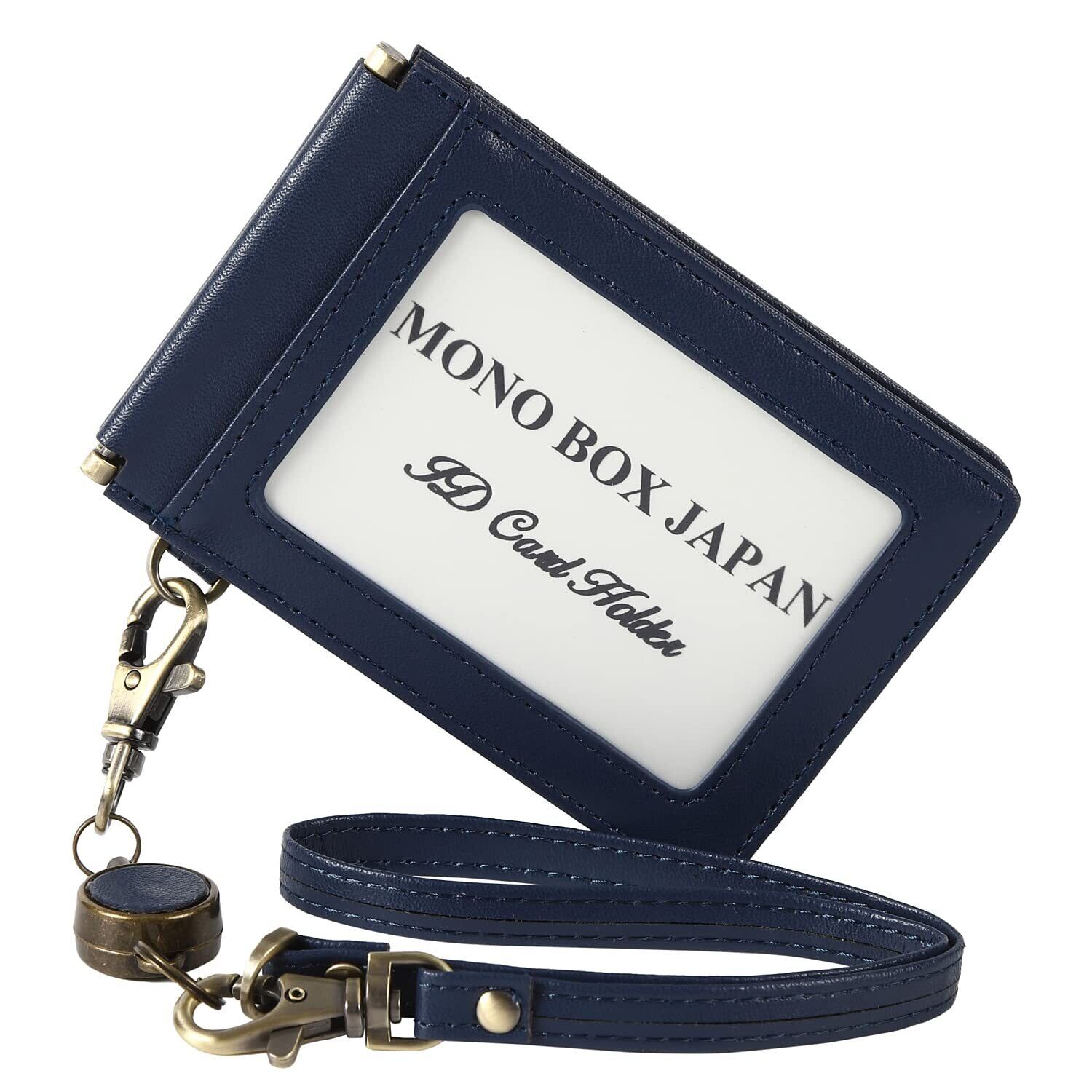 [モノボックス] パスケース 伸縮ストラップ付 定期入れ ICカード2枚使用可能バタフライタイプ 5ポケット 首下げOK pc-mono10 (ネイビー)