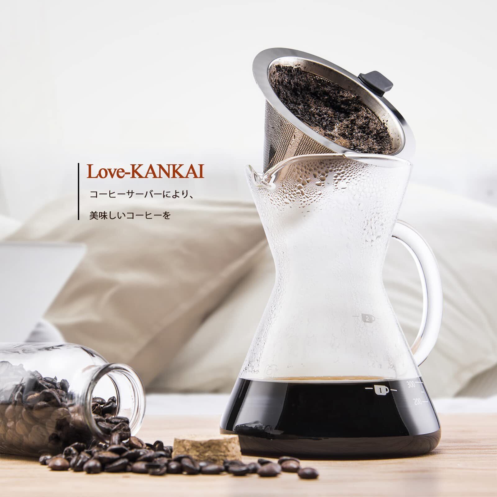 Love-KANKEI コーヒーサーバー コーヒードリッパー コーヒーカラフェセット プレゼント スポンジブラシ付属 耐熱ガラス ステンレスフィルター 2層メッシュ フィルター不要 電子レンジ可 (500ml) | impsmile