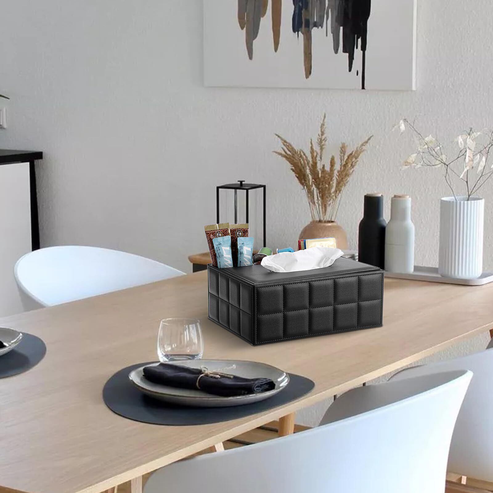 Sumnacon 多機能 卓上収納ケース ティッシュケース リモコンスタンド おしゃれ ティッシュボックス リモコンケース 卓上収納 ティッシュ リモコン ペン立て 小物入れ (ブラック グリッド)