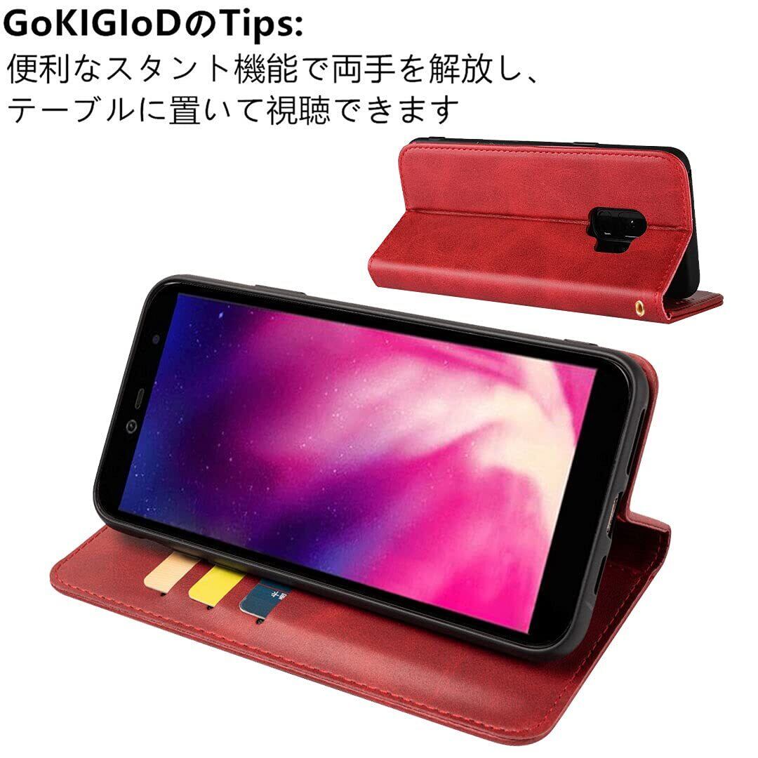 Galaxy S9 ケース 手帳型 ストラップ 同梱 SC-02K SCV38 手帳型ケース ギャラクシーS9 カバー SC02K スマホケース GalaxyS9 手帳ケース case 【GoKIGIoD】 人気 財布型 内蔵マグネット 弱磁 スタンド機能 カード収納 レトロ レッド