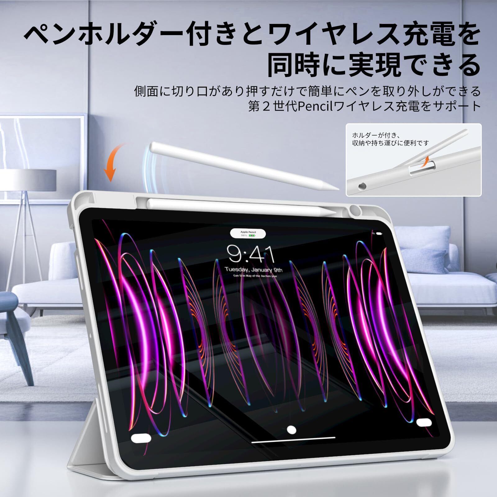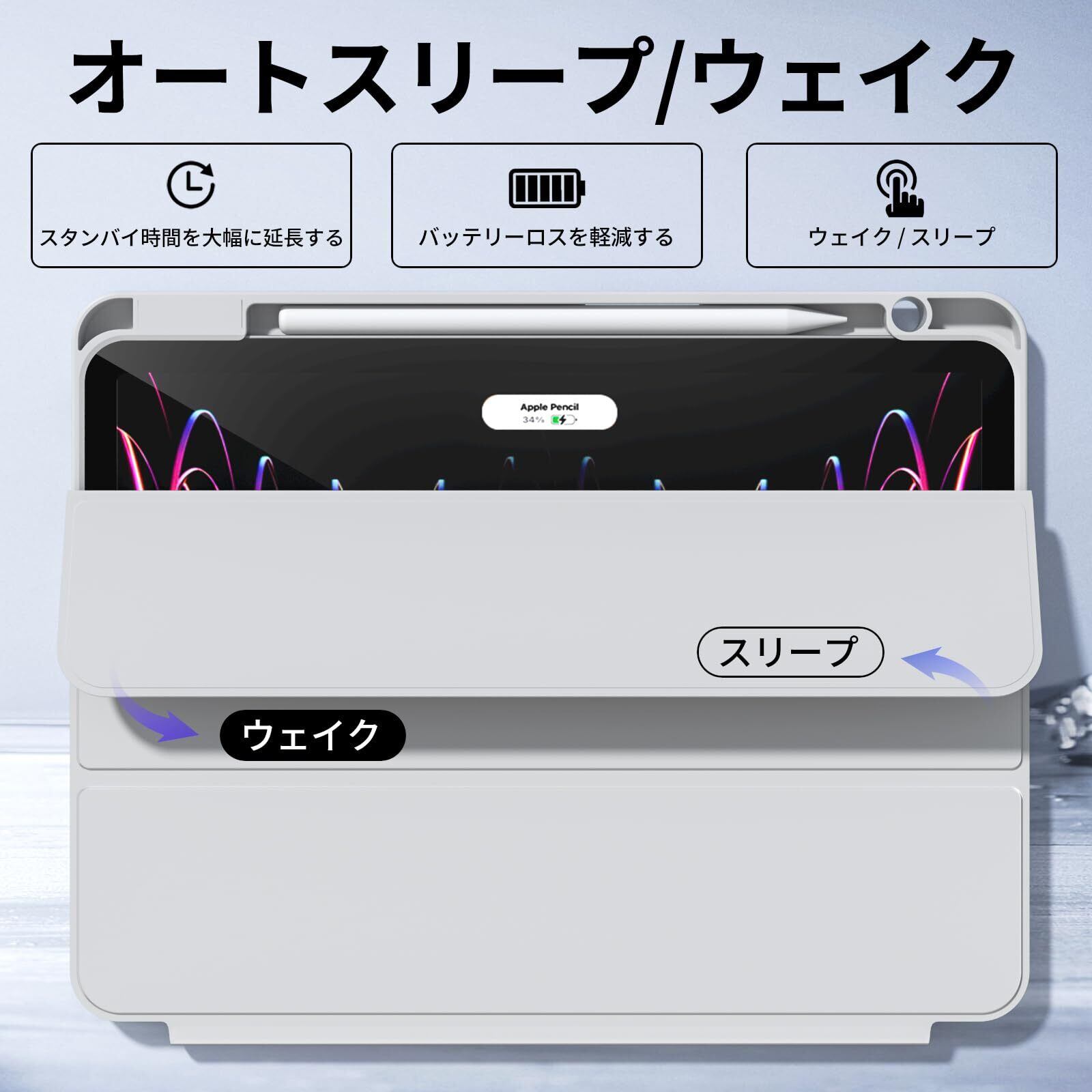 「Apple Pencil収納&充電対応&Touch ID」便利なPencilホルダーが付き、Pencilをしっかり収納でき、Pencilを紛失したり壊したりする状況を防ぎます。また、Pencil第2世代の磁気アタッチメント機能とワイヤレス充電をサポートしています。指紋認証Touch IDにも対応しています。いつでもどこでもiPadを快適に使えます。(ご注意:当該商品はケースだけで、iPad本体やApple Pencilなどがついていません。)