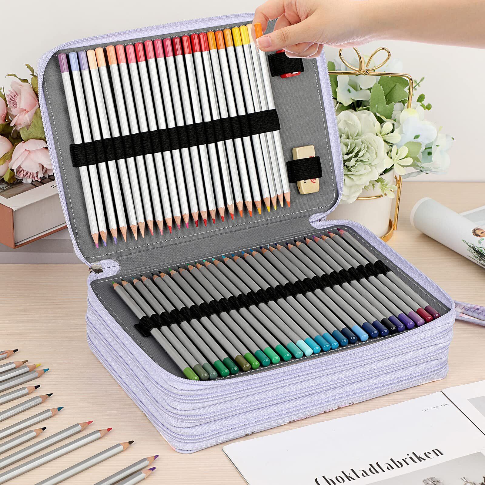 Sumnacon 色鉛筆ケース 大容量色鉛筆収納ケース ペンケース 200本入るでき 筆箱 ペンシルホルダー 文具収納 おしゃれ ライトパープル バタフライ様(ペンケース*1 鉛筆は含まれていない)