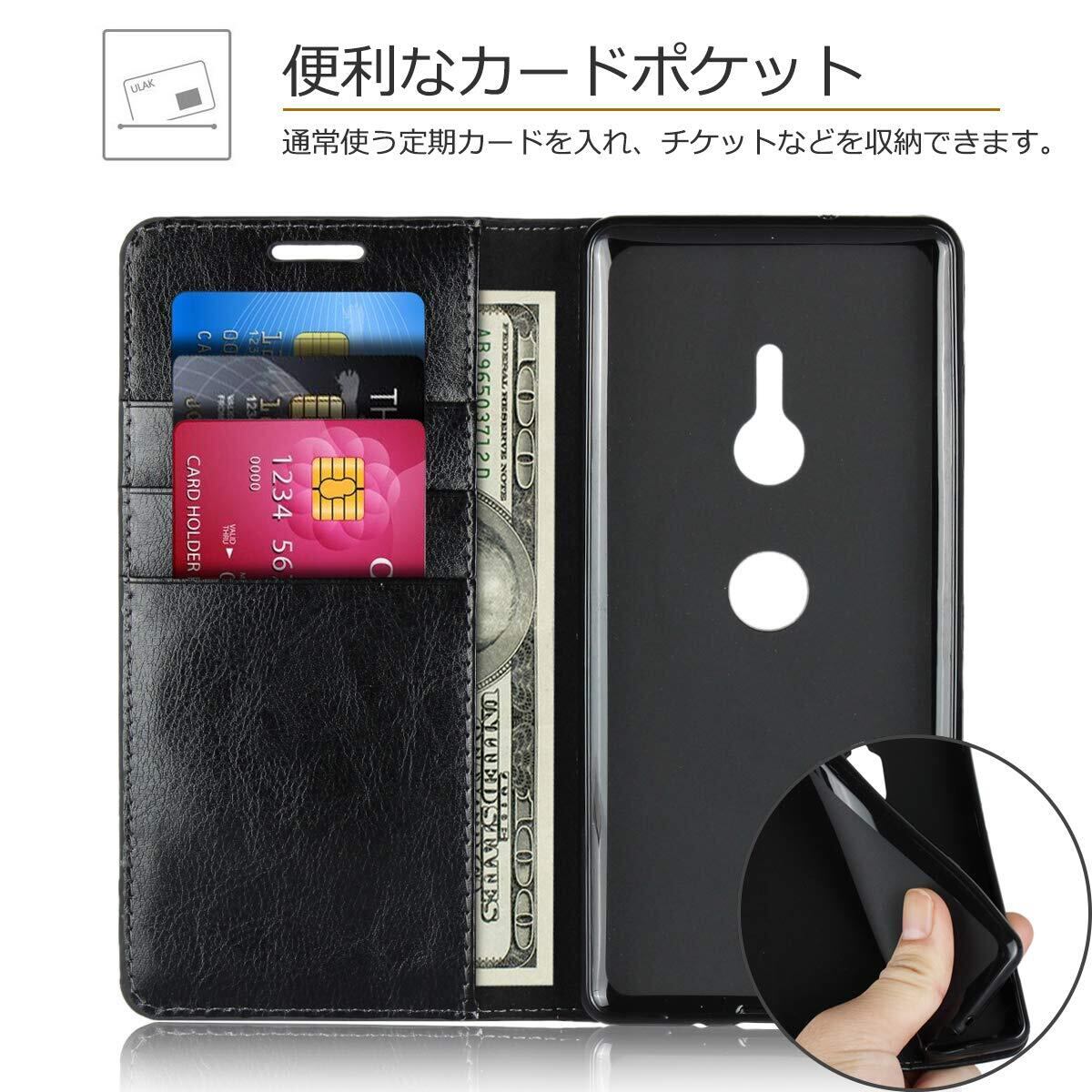 SKIASE ソニー Xperia XZ3 SO-01L SOV39 ケース カバー 手帳型 本革 マグネット無し レザー スタンド機能 カードスロット 収納ポケット ブラック