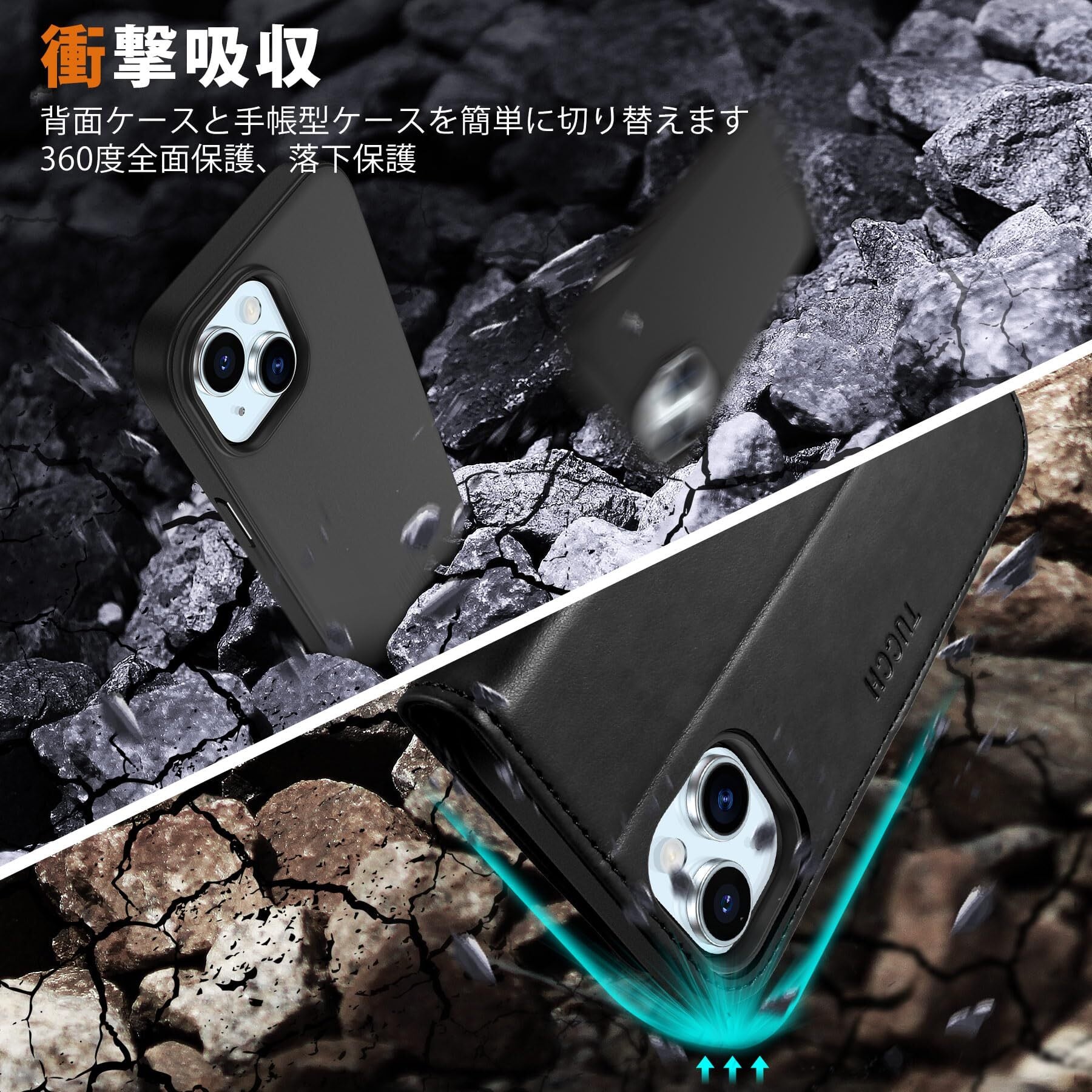 TUCCH iPhone15 Plus 対応 ケース 手帳型 2 in 1 分離式 iPhone 15 プラス ケース 手帳型 取り外し可能 2way 全面保護 [RFIDブロッキング] 高級PU合皮 カードポケット スタンド機能 衝撃吸収 アイフォン15プラスケース 2023年発売 アイフォン15 Plus 6.7インチ 対応 ブラック (2 in 1 分離式) | impsmile
