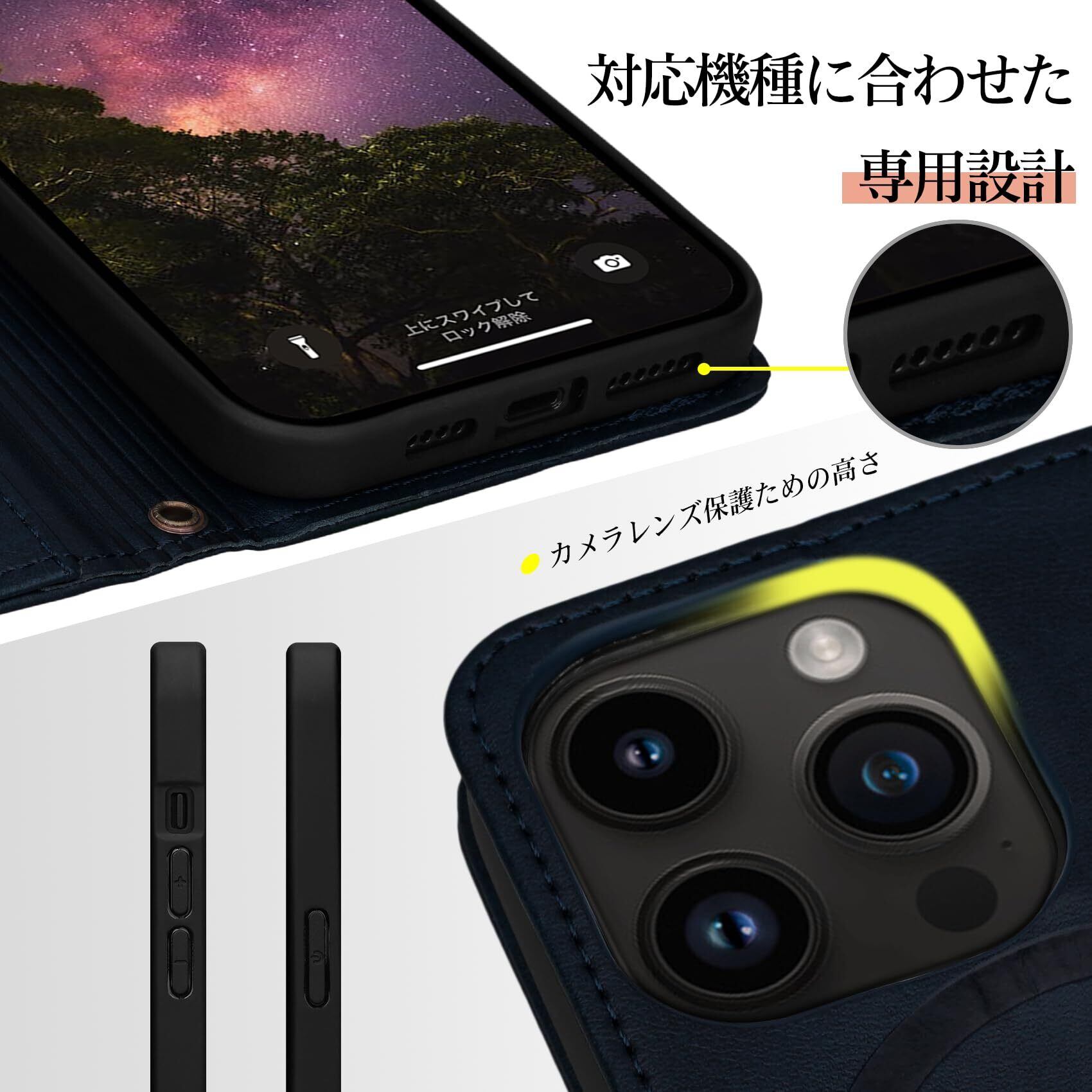 機種対応:6.1インチ;iPhone 15 pro 用 手帳型 ケースに対応。シンプルですっきりとしたシルエットに仕上げました。ご注意:Magsafe対応充電をする際は、位置を何度か調整して試してみてください。