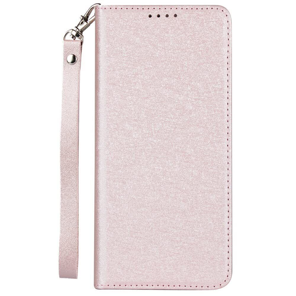 Elick HUAWEI P20 lite/HUAWEI P20 lite HWV32 用 ケース カバー 薄型 高級PUレザー 手帳型 マグネット式 ベルトなし ストラップ付き カード収納 ファーウェイ P20 ライト スマホケース ローズゴールド