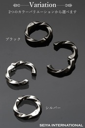 【 おしゃれなデザイン 】フープタイプにツイスト(ねじり)を加えどの角度から見てもキラキラと高級感のある輝きを放つツイストフープイヤリング、シンプルなフェイクピアスに飽きてしまった方や周りと差をつけたい方におすすめのアクセサリーです。ツイストフープフェイクピアスはメンズだけではなく、レディースにもお使いいただけます。光の反射により輝きを放ち、ねじりを効かせたデザインがあなたの耳元をおしゃれに演出します。耳に直接触れる部分は耳への負担が少なく外れにくい平らなフラット加工をしております。フープイヤリングのサイズは外径15mm 内径10mmフープイヤリングの厚さは約2.5mm 重さは約1グラムになります。カラーはシルバー ブラックからお選びください。